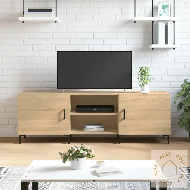 Solid materiale: Den er laget av konstruert tre med glatt overflate, noe som gir både holdbarhet og lang levetid. Materialet er kjent for sine styrkeegenskaper og motstand mot fukt, så TV-benken er robust nok til daglig bruk. I tillegg er den enkel å holde ren, noe som gjør den særlig brukervennlig.