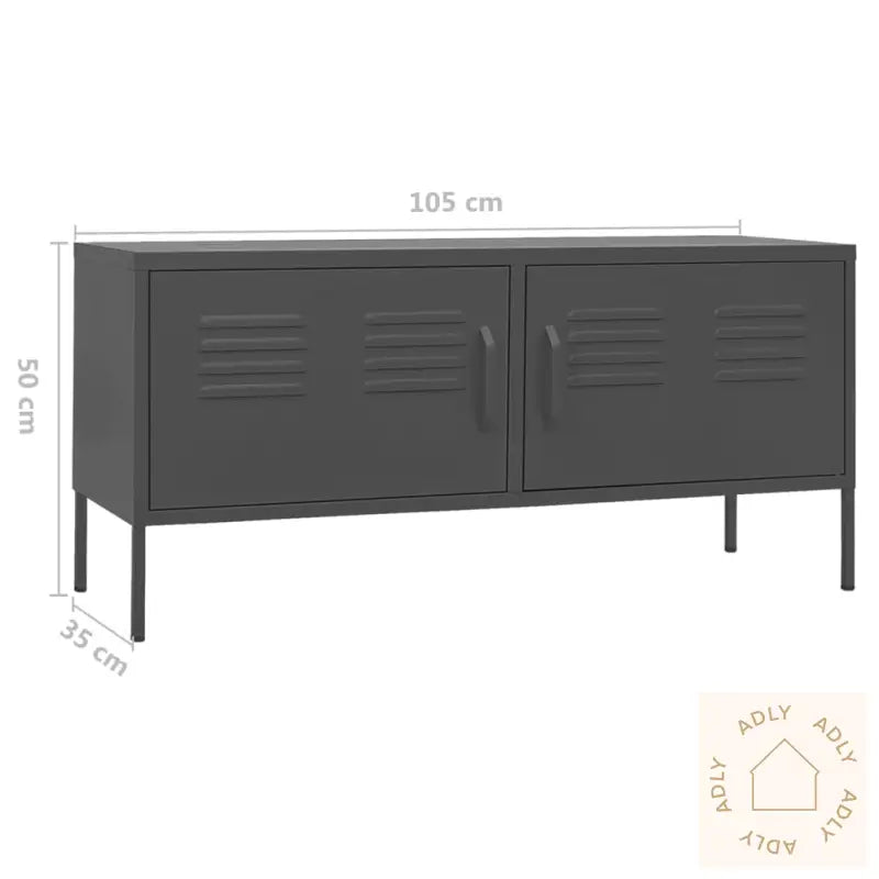 Farge: antrasittMateriale: stålMål: 105 x 35 x 50 cm (L x B x H)Høyde ben: 15 cmAntall hyller: 1 (ikke justerbar)Lastekapasitet per hylle: 50 kgTotal lastekapasitet: 100 kgMed benutjevnere på bunnen som justerer høydenPraktiske åpninger på bakpanelet for kabel-organiseringMontering kreves: jaADVARSEL: For å forhindre at produktet velter, må de medfølgende festemidlene for vegg brukes.