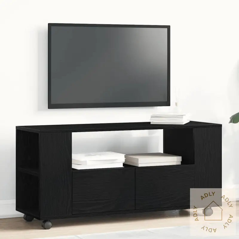 Denne TV-benken i svart eik kombinerer stilig design med funksjonalitet og er et attraktivt tillegg til både stue og soverom, enten du leter etter møbler til hjemmet eller ønsker å oppdatere oppbevaringen sammen med bokhyller og stående hyller.
