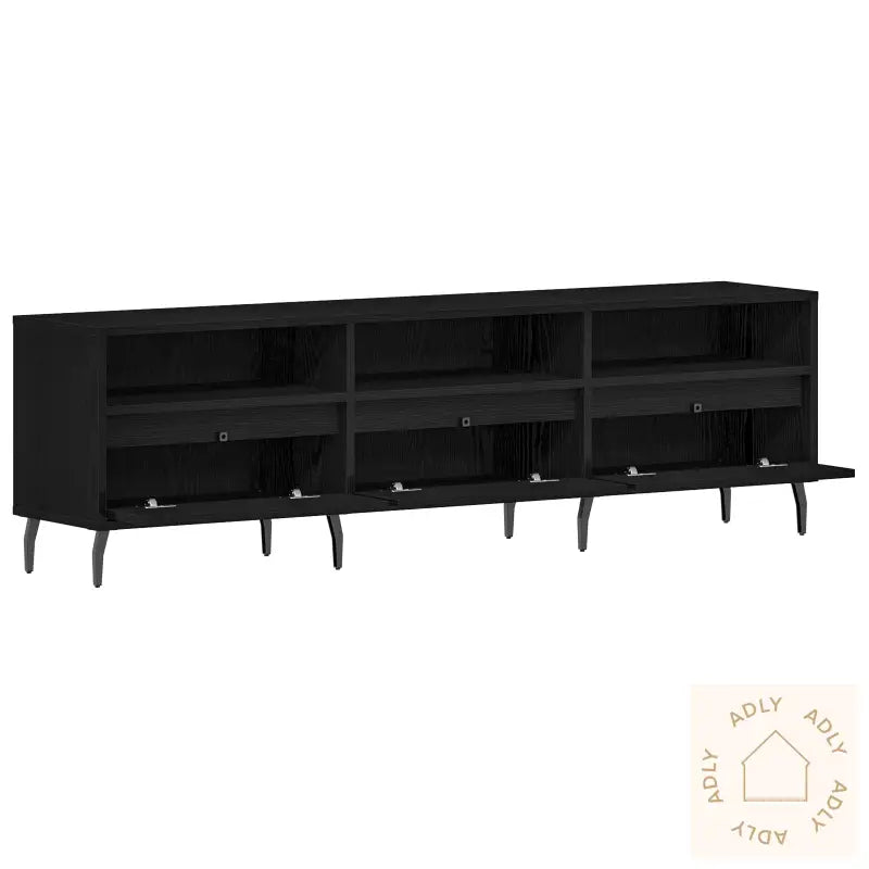 Dette moderne TV-stativet i svart eik gir en stilig og robust overflate som virkelig kan lyse opp ethvert rom, samtidig som det holder underholdningsutstyret ditt både ryddig og lett tilgjengelig. De rene linjene og den matte finishen sørger for et moderne uttrykk, og kombinerer eleganse med praktisk funksjonalitet på en måte som passer perfekt i dagens hjem.
