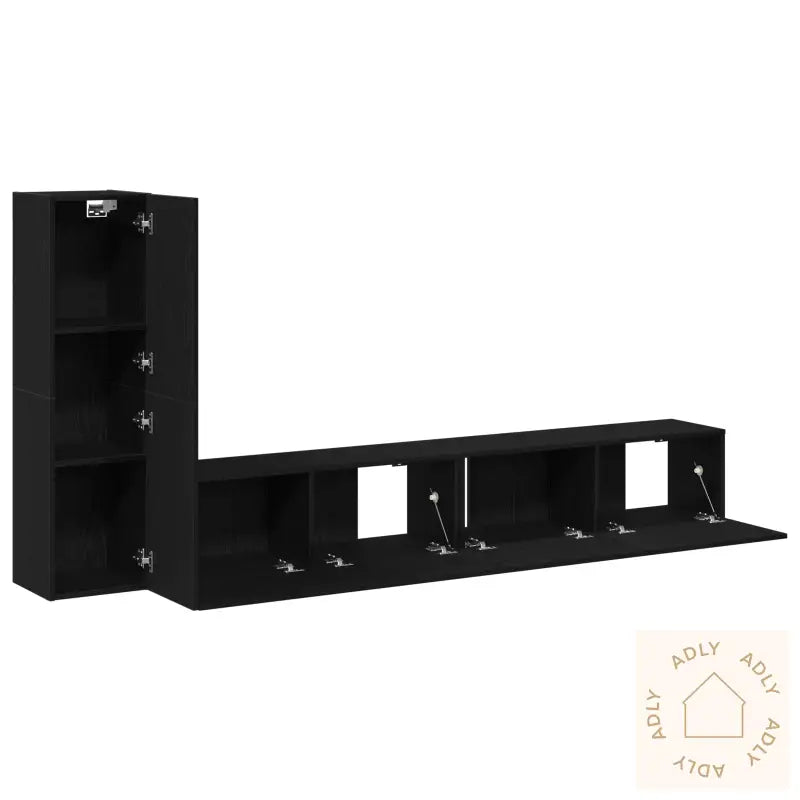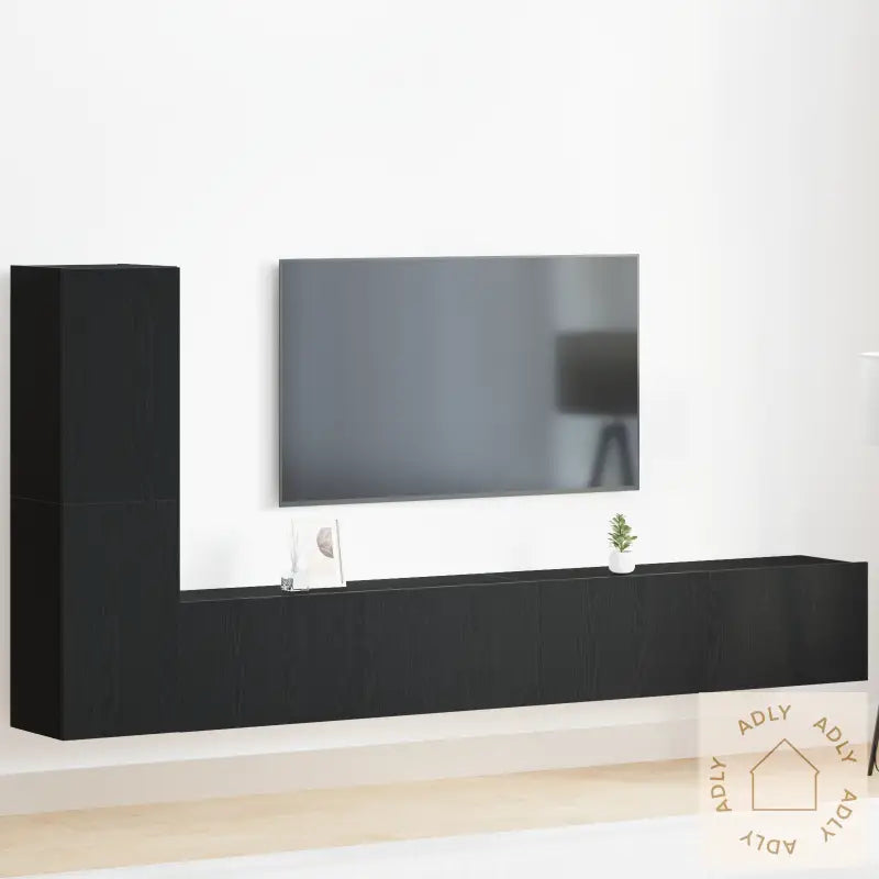 Dette flotte underholdningssenteret i svart eik kombinerer moderne design med praktisk funksjonalitet, og passer perfekt inn blant møbler til hjemmet. Den elegante og matte overflaten gir et løft til stuen din, mens den solide konstruksjonen i MDF-tre sikrer lang holdbarhet. For deg som liker at rommet ser bra ut samtidig som alt har sin plass, gir dette møbelet smarte lagringsløsninger og stilrent preg, som passer spesielt godt inn i voksnes hjem.