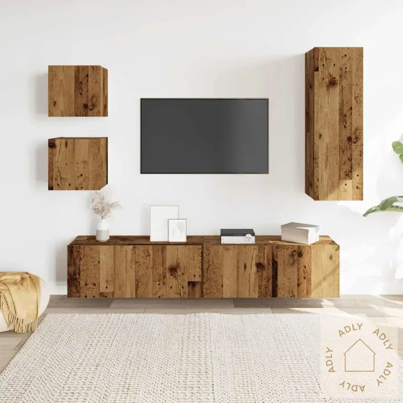 Skruer og plugger for veggmontering følger ikke med. Vi anbefaler at du bruker festemidler som passer best til nettopp din veggtype. Usikker? Spør en fagperson, og husk å følge monteringsanvisningen nøye for trygg installasjon.Farge: gammelt treMateriale: konstruert treMontering kreves: jaLeveransen inneholder:2 x TV-benker: 30,5 x 30 x 30 cm (B x D x H)1 x TV-benk: 30,5 x 30 x 90 cm (B x D x H)2 x TV-skap: 80 x 30 x 30 cm (B x D x H)Dette TV-benksettet er et smart valg for deg som ønsker funksjonelle og stilrene møbler til hjemmet, med lang holdbarhet og allsidige løsninger som gjør hverdagen enklere. Passer perfekt sammen med andre hagemøbler og interiør om du vil skape en gjennomført stil.