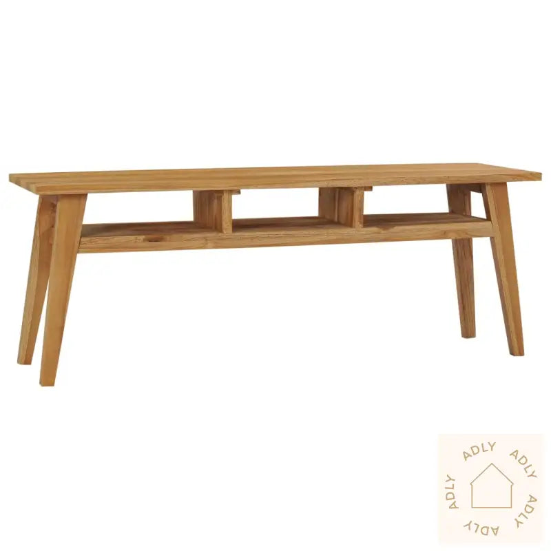 TV-benken har en naturlig finish som fremhever treets vakre fargespill og årringer. Den robuste bordplaten i heltre teak gir massevis av plass til både TV, ruter, medieutstyr, eller pyntegjenstander som bilderammer, vaser, eller fruktskåler. Med 3 åpne hyller får du god oversikt og enkel tilgang til alt av småting, elektronikk eller bøker – ideelt for å holde stuen ryddig og organisert.