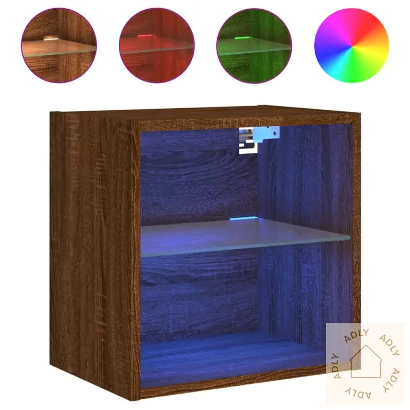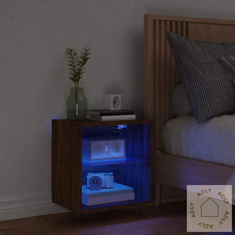 Nattbordet med LED lys kombinerer et trendy utseende med praktiske funksjoner, og vil definitivt tiltrekke seg oppmerksomhet i soverommet ditt. Med moderne RGB LED-lys kan du tilpasse stemningen etter humøret ditt, enten det skal være avslappende eller litt mer fargerikt i rommet. Det stilrene designet i brun eik gir nattbordet et varmt preg samtidig som det matcher enkelt med andre møbler.