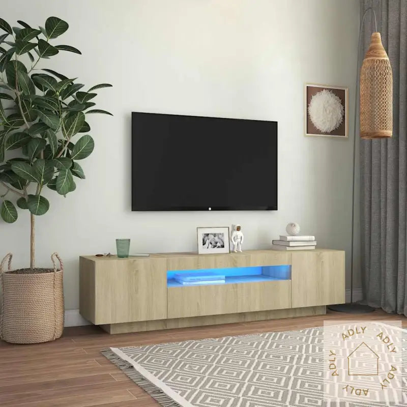 Denne TV-benken med LED lys kombinerer et moderne design med praktiske funksjoner, og blir garantert et blikkfang i stuen. Enten du ser etter noe som gir litt ekstra stemning eller bare vil ha et stilrent møbel, så gir RGB LED-lysene mange valgmuligheter for lysfarge og atmosfære – du kan tilpasse lyset med ulike menyer og la fargene skifte av seg selv. Dette gjør at TV-benken passer perfekt til både filmkvelder og gaming.