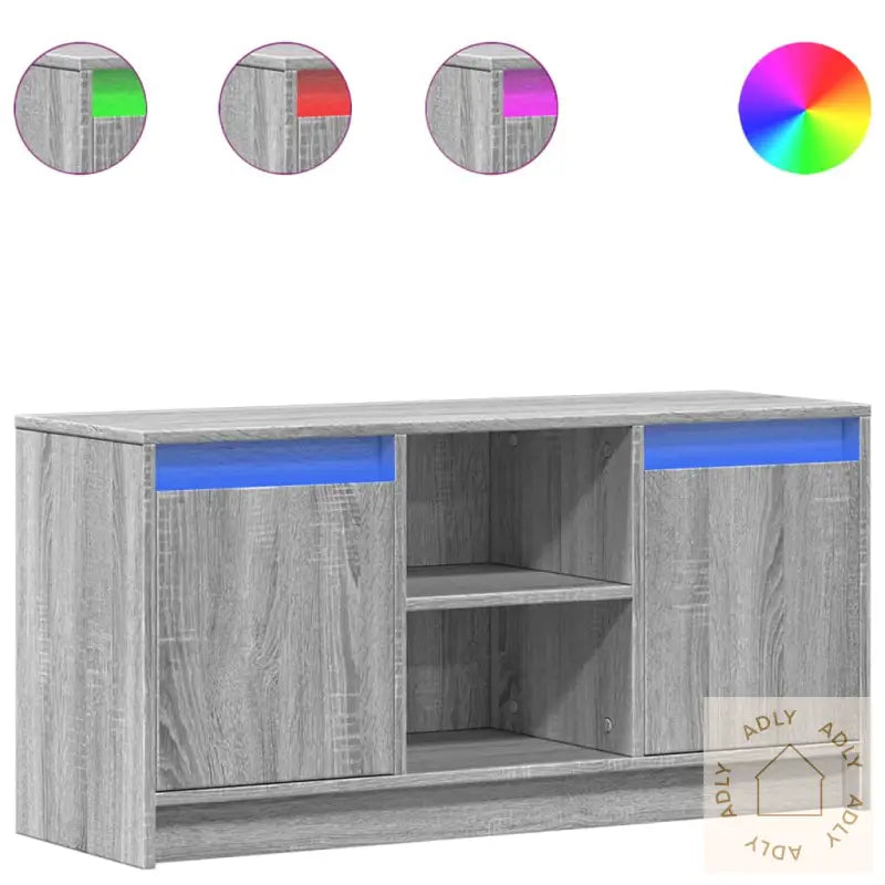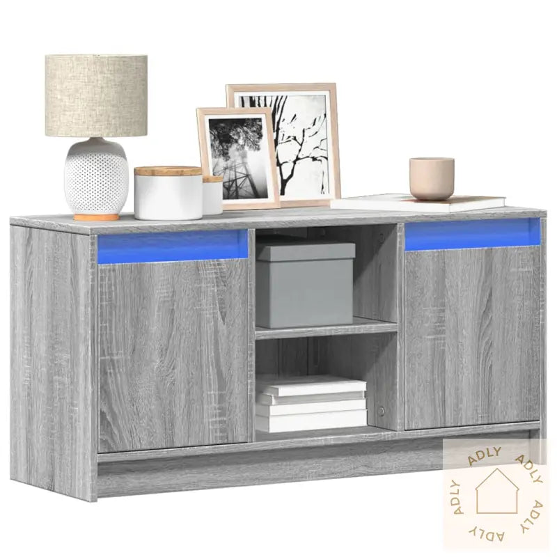 Holdbart materiale: TV-benken er laget i konstruert tre av høy kvalitet og har en glatt overflate som ikke bare ser bra ut, men som også sørger for god styrke og stabilitet. Dette materialet tåler både daglig bruk og har økt motstand mot fuktighet, slik at du får langvarig glede av møbelet – perfekt for alle som er ute etter robuste løsninger når de skal kjøpe nye møbler til hjemmet.RGB LED-lys for stemningsfull atmosfære: Integrerte LED-lys lar deg enkelt skifte mellom ulike lysmoduser, justere farger og tilpasse lysstyrken slik du selv vil. På den måten kan du skape den rette stemningen, enten du vil ha et koselig skjær under filmkvelden eller mer energi for hverdagsaktivitetene dine. LED-lyset styres lett og gir TV-benken en ekstra dimensjon, noe som virkelig løfter interiøret.Rikelig med oppbevaringsplass: Benken har god plass for alt fra magasiner, bøker, DVDer og multimedieutstyr, så du holder ting organisert og tilgjengelig. Løsningen gir deg muligheten til å kombinere denne TV-benken med bokhyller og stående hyller, og skape et system for oppbevaring som både er praktisk og estetisk.Stabil og solid bordplate: Den kraftige toppen gir trygg plass til TVen, lydanlegg eller dekorative elementer som vaser eller potteplanter. Med maksimal lastekapasitet på opptil 80 kg totalt, og 20 kg per hylle, kan du stole på at TV-benken trygt tåler det meste uten problemer.Godt å vite: