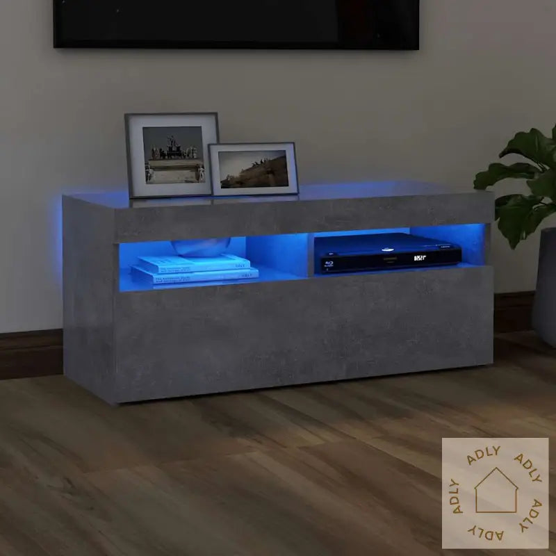 Farge: betonggråMateriale: konstruert treMål: 90 x 35 x 40 cm (L x B x H)Med RGB LED-lysMontering kreves: ja