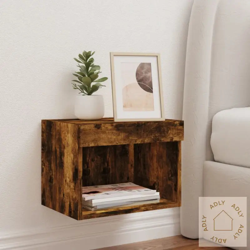 Slitesterkt materiale: Konstruert treverk av høy kvalitet gir nattbordet en jevn overflate, samtidig som det er robust og motstandsdyktig mot både fuktighet og daglig bruk. Perfekt om du ønsker møbler som varer lenge uten mye vedlikehold.Rikelig med lagringsplass: Nyt en praktisk løsning hvor magasiner, bøker, fjernkontroller og småsaker får fast plass. Alt er enkelt å holde organisert og lett tilgjengelig fra senga.RGB LED-lys: Oppgrader stemningen med multifargede RGB LED-lys. Du kan velge mellom ulike fargeinnstillinger og la lyset endre seg automatisk etter humør eller anledning – supert for deg som vil ha det ekstra koselig i soverommet med moderne led lys.Visningsfunksjon: Bordplaten er perfekt for å vise frem dekor, bilder eller grønne planter – så du kan personliggjøre rommet på din måte.Veggmontert design: Spar verdifull gulvplass! Dette nattbordet kan enkelt festes på veggen, noe som gir et ryddig uttrykk og ekstra lagringsmuligheter. Flott for mindre rom eller for deg som vil ha minimalistisk stil på soverommet.Godt å vite: