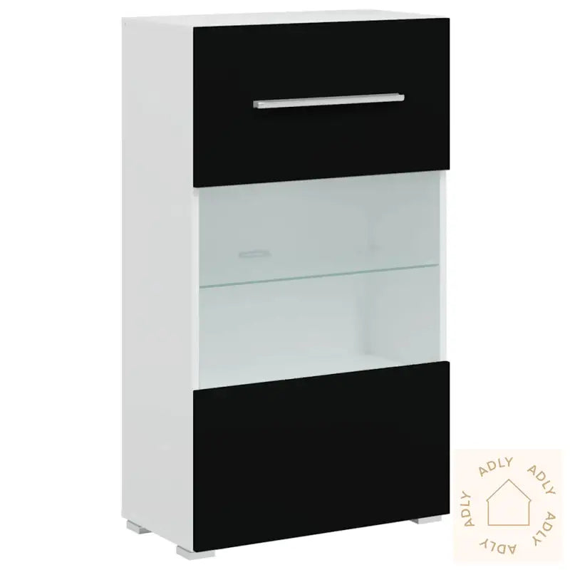 Lowboardet består av 2 skap, slik at du kan organisere etter behov.Farge: matt svartMateriale: konstruert treHvit LED-belysning med støpselTykkelse plater: 16 mmTykkelse glassdør: 4 mmTykkelse glasshylle: 5 mmMontering kreves: jaLeveransen inneholder:1 x stort lowboard: 120 x 39,5 x 34 cm (B x D x H)1 x lite lowboard: 60 x 39,5 x 34 cm (B x D x H)1 x Veggskap: 60 x 33 x 103,5 cm (B x D x H)1 x vegghylle: 90 x 20 cm (B x D)1 x gulvstående skap: 60 x 33 x 105,5 cm (B x D x H)1 x sett med monteringstilbehør