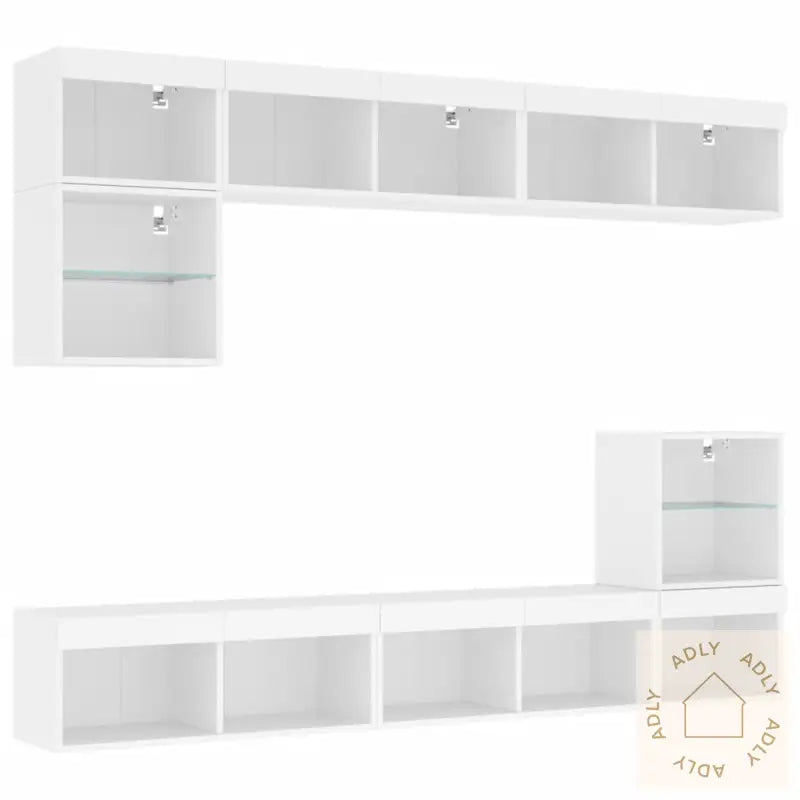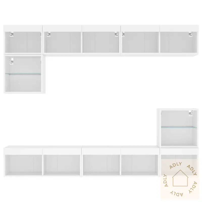 Skruer og plugger for veggmontering følger ikke med, så velg festemidler som passer til dine veggtyper. Er du usikker, bør du rådføre deg med fagfolk. Les instruksjonene nøye for trygg og riktig montering.Produktet har USB-kontakt for rgb led-lys, og krever en 5V USB-strømkilde (ikke inkludert).Farge: HvitMaterialer: Konstruert tre, glassMontering nødvendig: JaDette får du levert:2 x veggskap: 40 x 28,5 x 40 cm (L x B x H)2 x veggskap: 40 x 30 x 30 cm (L x B x H)4 x veggskap: 80 x 30 x 30 cm (L x B x H)Oppgrader hjemmet ditt med praktiske og stilfulle veggenheter for mer organisert oppbevaring og en unik atmosfære med RGB led-lys – perfekt sammen med andre møbler til hjemmet eller som del av et større system med bokhyller og stående hyller.