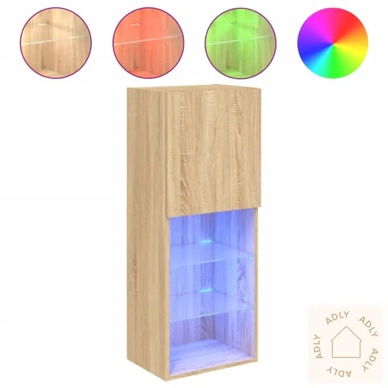 Denne TV-benken i sonoma eik med RGB LED-lys har et stilig og moderne utseende som kombinerer både funksjonalitet og estetikk. Den passer perfekt inn i hjemmet, enten du ser etter et nytt midtpunkt i stuen eller ønsker møbler til hjemmet som gir ekstra atmosfære til rommet.