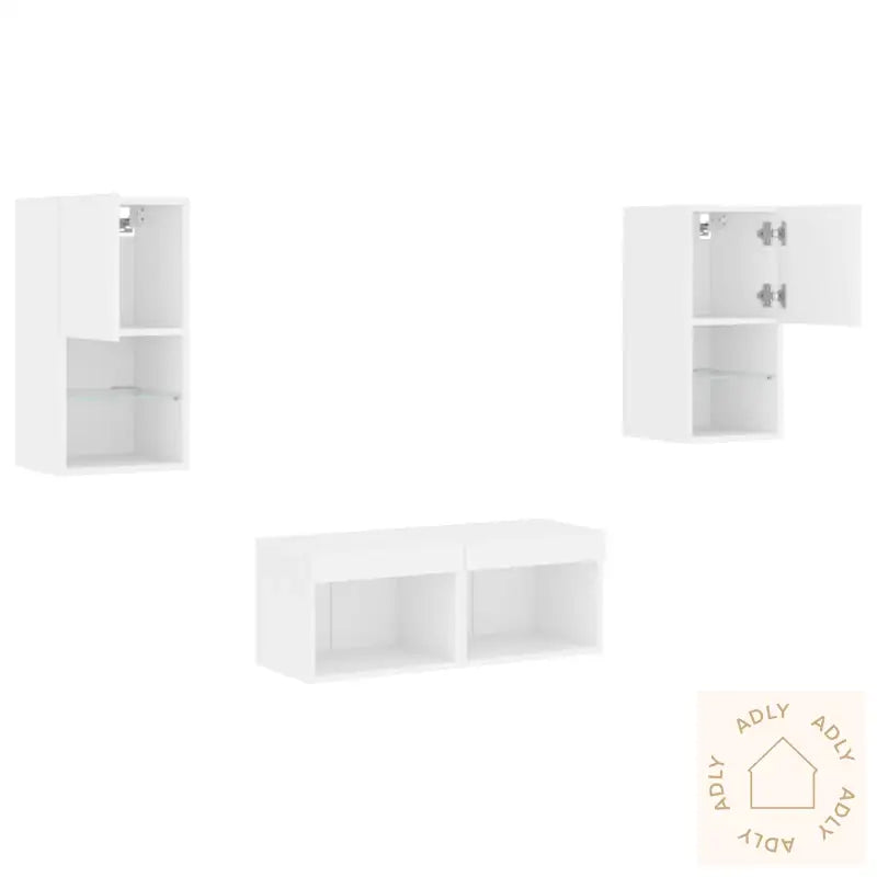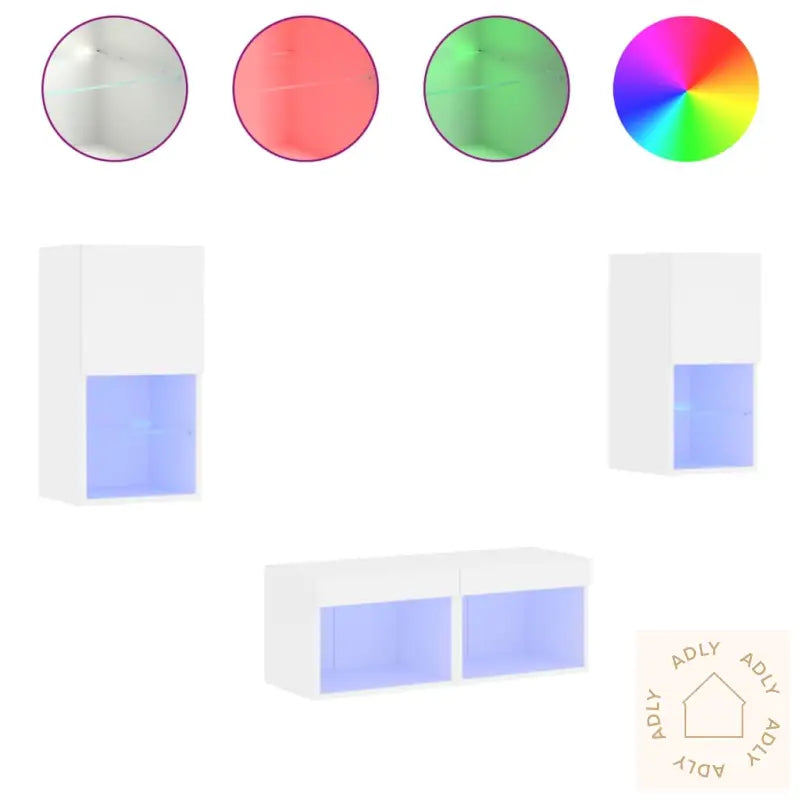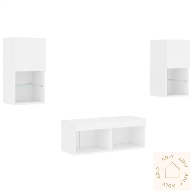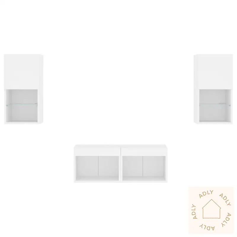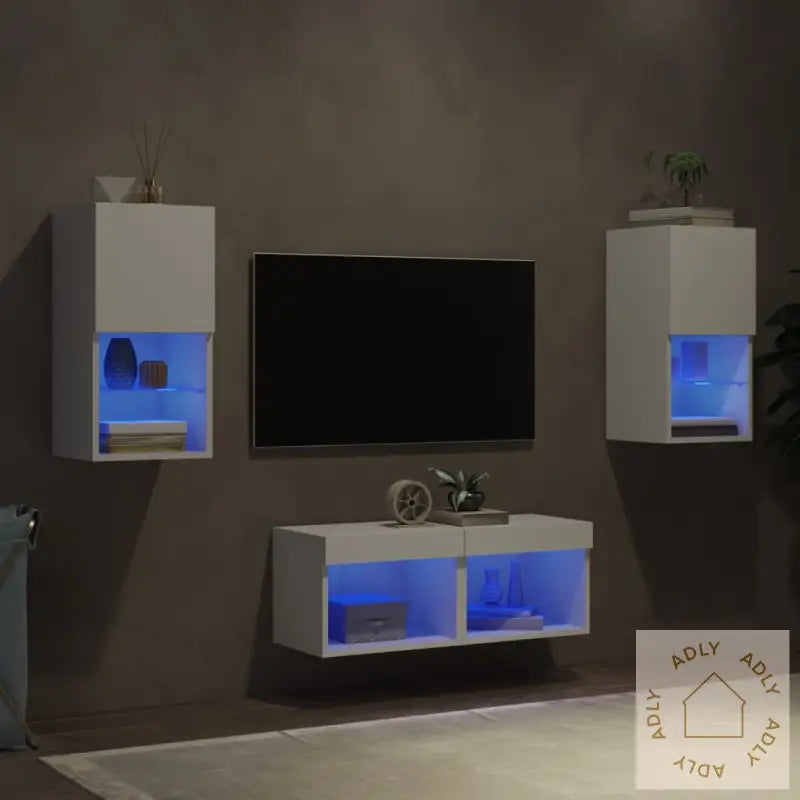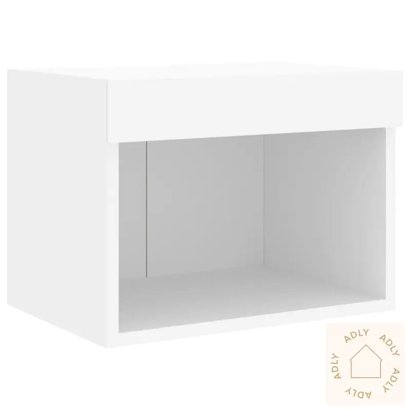 Skruer og plugger til veggmontering følger ikke med. Finn skruer og plugger som passer til dine vegger, og få gjerne hjelp fra en fagperson hvis du er usikker. Husk å lese og følge monteringsanvisningen nøye.Produktet har en USB-kontakt og krever en sertifisert 5V USB-strømkilde (ikke inkludert) til RGB LED-lysene.Farge: HvitMateriale: Konstruert treMontering kreves: JaLeveransen inneholder:2 x veggmonterte TV-benker: 30,5 x 30 x 60 cm (B x D x H)2 x vegghengte TV-benker: 40 x 30 x 30 cm (B x D x H)