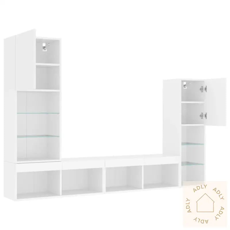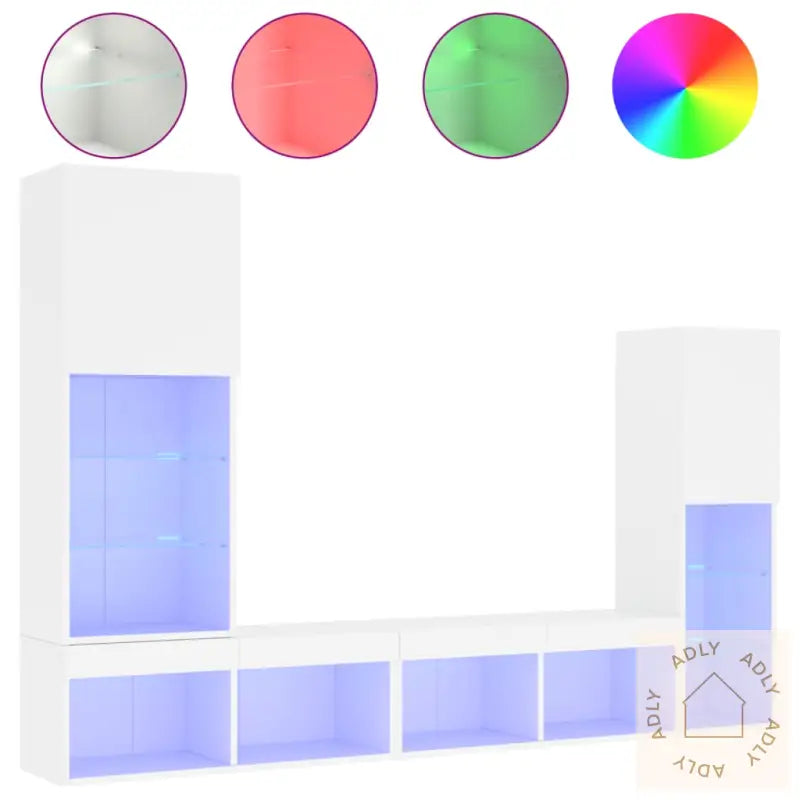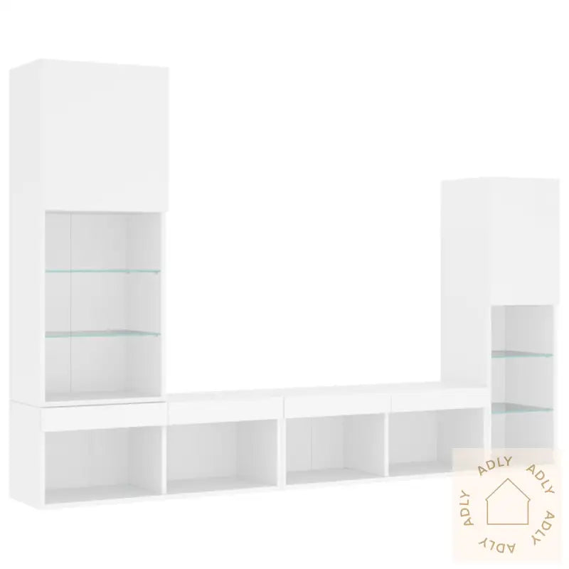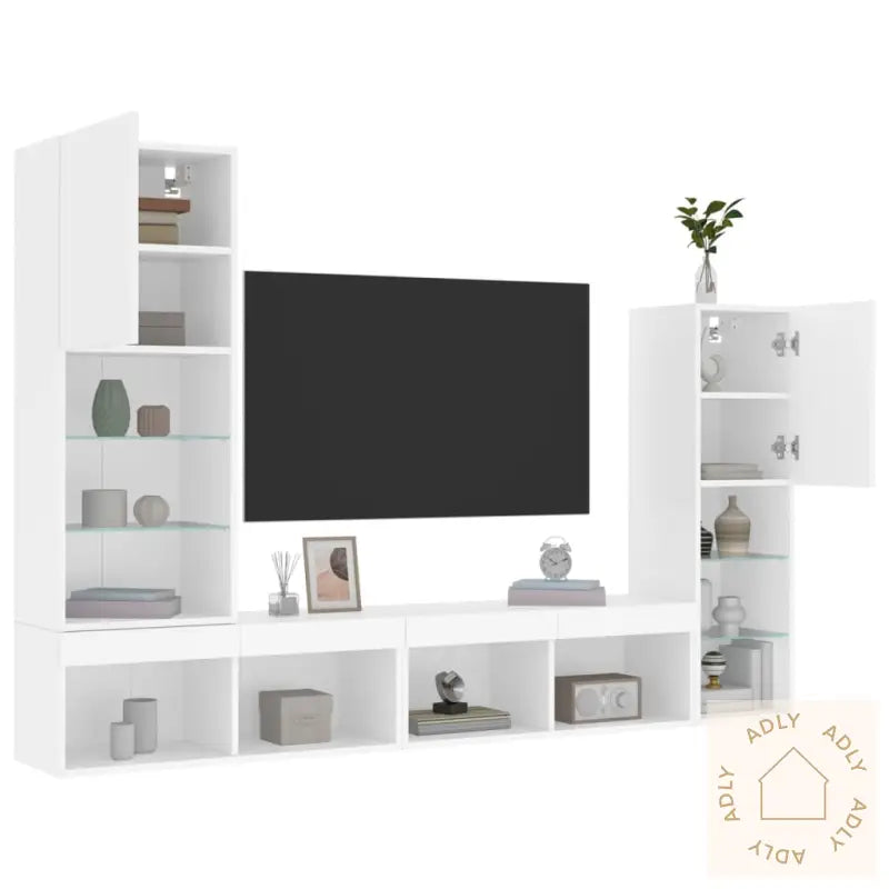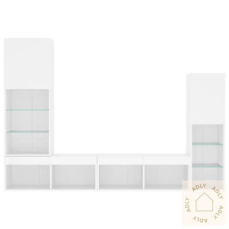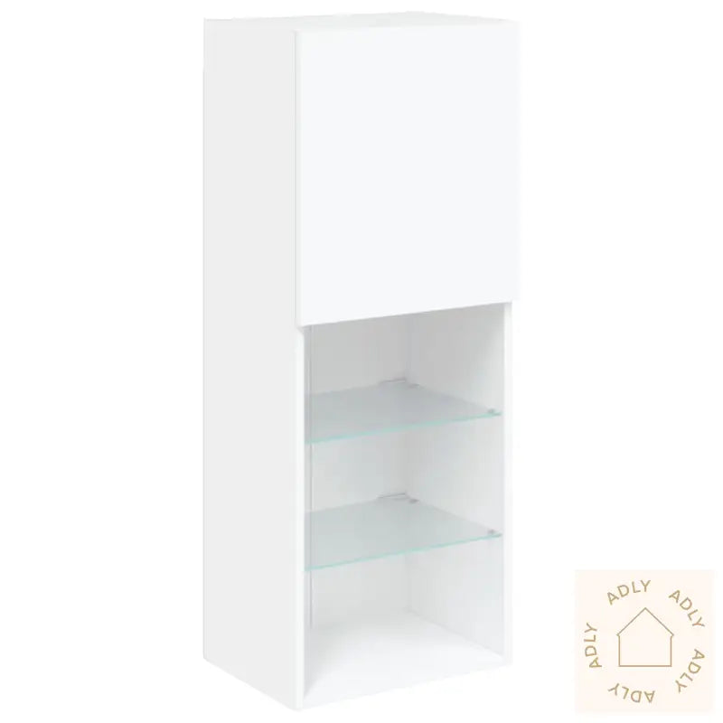 Den solide konstruksjonen i høykvalitets konstruert treverk gir ikke bare en jevn, pen overflate – materialet bidrar også til styrke, stabilitet og god motstand mot fukt. Skapene passer inn i ethvert interiør og tåler daglig bruk over tid.Med RGB LED-lys får TV-enhetene et ekstra løft, og du kan enkelt velge mellom ulike farger og lysmoduser for å matche stemning og personlig stil. Disse LED-lysene bidrar ikke bare til det trendy utseendet, men gir også et unikt preg som ofte kjennetegner moderne møbler til hjemmet. Alt styres praktisk med de brukervennlige menyene.Veggmontert design frigjør verdifull gulvplass og gir rommet et ryddigere, luftigere preg – enten du har store eller små rom. Dette gjør også rengjøring av hjemmet enklere, siden ingenting står i veien på gulvet.Med rikelig lagringsplass er det enkelt å holde orden på bøker, DVDer, magasiner, medieutstyr og andre småting. Alt du trenger finner du lett tilgjengelig og pent organisert i vegghyllene.Designet er svært allsidig. Vegghyllene fungerer like godt som klassisk TV-benk, eller kan brukes på arbeidsplassen for oppbevaring av verktøy og kontorutstyr. Samtidig fremhever den veggmonterte løsningen selve veggen og gjør den til en dekorativ del av interiøret.Godt å vite:
