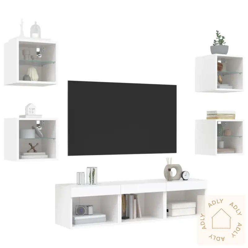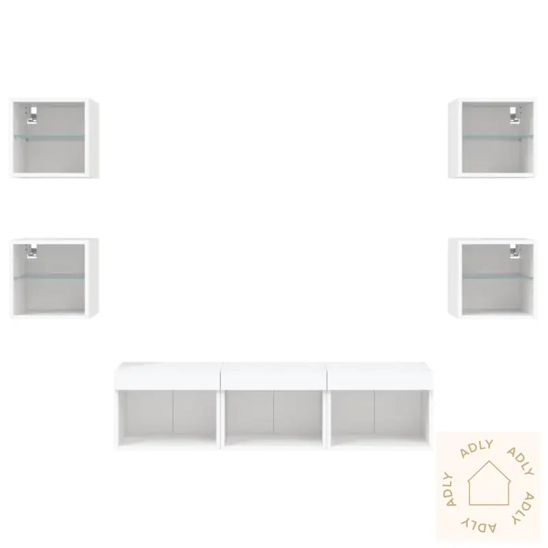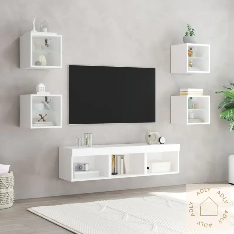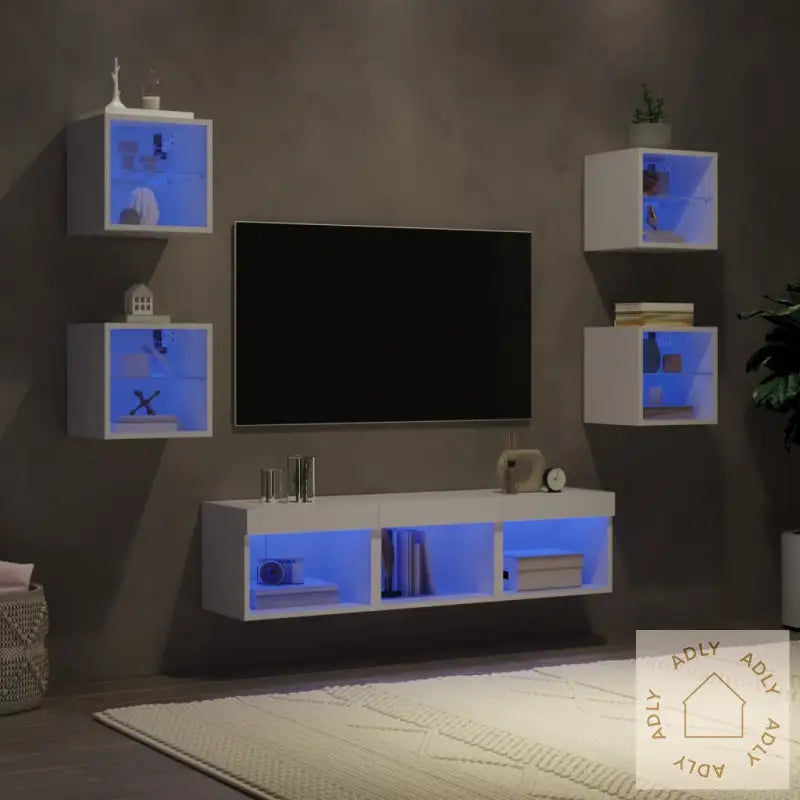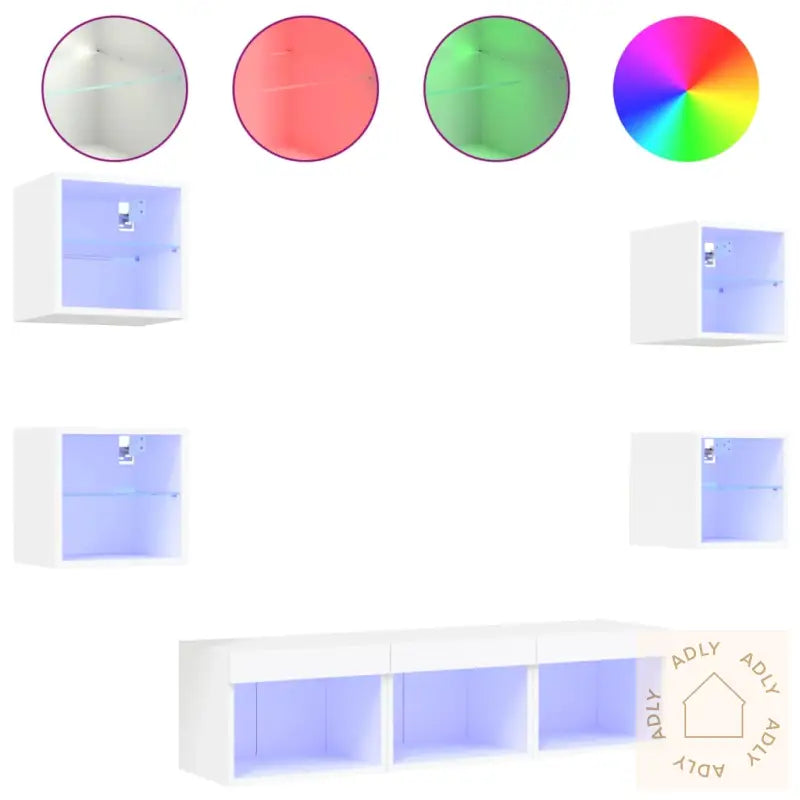 Solid materiale: Hver enhet er laget av konstruert treverk med høy kvalitet, som gir et glatt utseende sammen med god styrke, stabilitet og motstand mot fuktighet. Det gjør at disse møblene holder lenge og tåler daglig bruk.RGB LED-lys: Med innebygde RGB LED-lys får du en unik mulighet til å skape akkurat den stemningen du ønsker. Du kan velge mellom ulike farger og lysinnstillinger via de intuitive menyene, samt aktivere automatisk fargeveksling for ekstra effekt. Disse LED-lysene gir et trendy preg og setter et moderne uttrykk på veggskapet – tilpasset både din smak og dagens interiørtrender.Veggmontert design: Smarte løsninger som kan monteres direkte på veggen gjør det enkelt å frigjøre verdifull gulvplass. Perfekt hvis du har lite plass, eller bare vil rydde opp og organisere hjemmet på en stilig og effektiv måte.Rikelig med lagringsplass: Med flere vegghengte skap kan du enkelt organisere alt fra bøker, magasiner, og DVD-er til medieutstyr og andre nødvendigheter. Alt er lett tilgjengelig, samtidig som det holdes pent og ryddig.Allsidig design: Disse veggskapene har mange bruksområder – bruk dem som TV-benk på stua, eller heng dem opp på kontoret eller arbeidsplassen for praktisk oppbevaring av verktøy og annet utstyr. Skapene gir ikke bare funksjon, men tilfører også veggen et moderne blikkfang.Godt å vite: