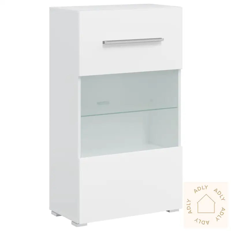 Lowboardet består av 2 skap.Farge: matt hvitMateriale: konstruert treHvit LED-belysning med støpselTykkelse plater: 16 mmTykkelse glassdør: 4 mmTykkelse glasshylle: 5 mmMontering kreves: jaLeveransen inneholder:1 x stort lowboard: 120 x 39,5 x 34 cm (B x D x H)1 x lite lowboard: 60 x 39,5 x 34 cm (B x D x H)1 x Veggskap: 60 x 33 x 103,5 cm (B x D x H)1 x vegghylle: 90 x 20 cm (B x D)1 x gulvstående skap: 60 x 33 x 105,5 cm (B x D x H)1 x sett med monteringstilbehør