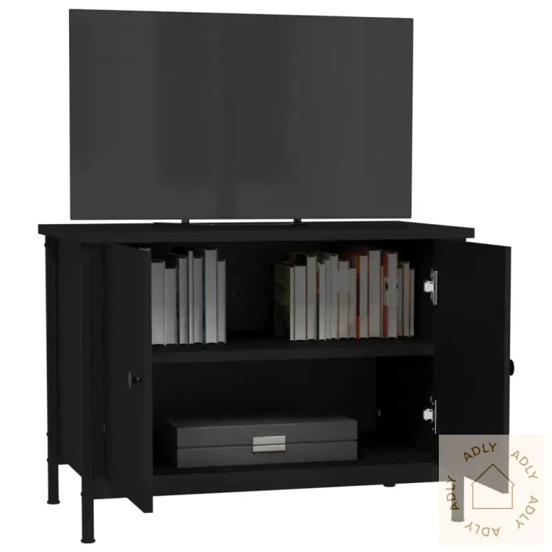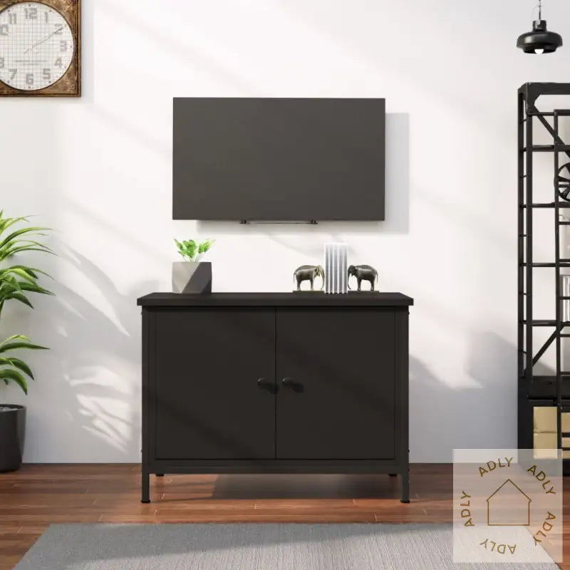 Slitesterkt materiale: TV-benken er laget av konstruert tre av høy kvalitet, noe som gir den en glatt overflate og gjør at den tåler daglig bruk. Materialet er både stabilt og motstandsdyktig mot fuktighet, så du får en robust løsning som varer lenge.Rikelig med lagringsplass: Benken har to rom, så du kan enkelt organisere alt fra magasiner til DVD-er. Perfekt for å holde småting samlet og ryddig i hverdagen.Robust bordplate: Den solide toppen gir deg plass til å sette frem dekorative detaljer som fotorammer eller potteplanter, slik at du kan sette ditt personlige preg på rommet.Praktiske dører: Du slipper støv og rot – bare legg eiendelene dine bak dørene, så ser det alltid pent og ordentlig ut i mediaskapet.Metallføtter: De stilige metallføttene løfter designet og gir ekstra stabilitet, samtidig som de gir en moderne touch som matcher andre møbler eller hagemøbler.Godt å vite: