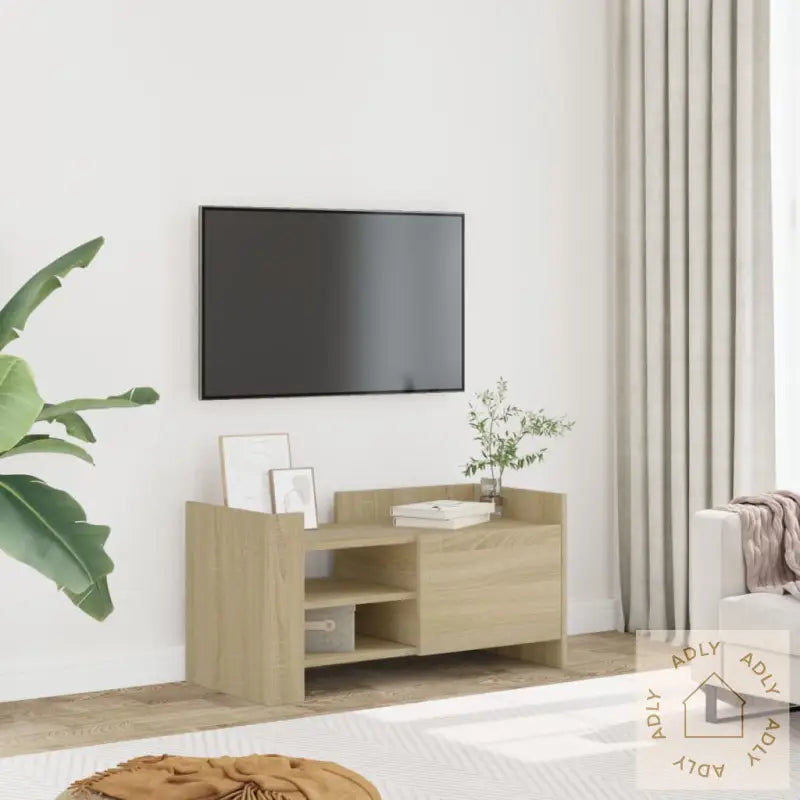 TV-benken er laget av konstruert tre, som kjennetegnes av sin styrke, holdbarhet og motstandsdyktighet mot både fukt og deformasjon. Overflaten er jevn og robust, noe som gir et elegant uttrykk og lang levetid – perfekt for deg som ønsker slitesterke møbler til hjemmet.Her får du rikelig med oppbevaringsplass, slik at du enkelt kan holde bøker, magasiner, multimedieenheter, DVD-er og andre småting innen rekkevidde. Perfekt om du vil ha orden og oversikt, spesielt sammen med bokhyller og stående hyller.Sidepanelene og bakpanelet kan tilpasses etter plass og behov, enten du ønsker at de skal være til venstre eller høyre. Dette gjør benken fleksibel til ulike romløsninger.Døren hjelper deg å skjule rot og små nødvendigheter, slik at alt ser ryddig ut helt uten anstrengelse.Benkens overflate er lett å rengjøre – det holder fint med en fuktig klut, så vedlikeholdet blir minimalt og hverdagen litt enklere.Farge: Sonoma eikMateriale: Konstruert treMål: 80 x 35 x 40 cm (B x D x H)Enkel montering kreves