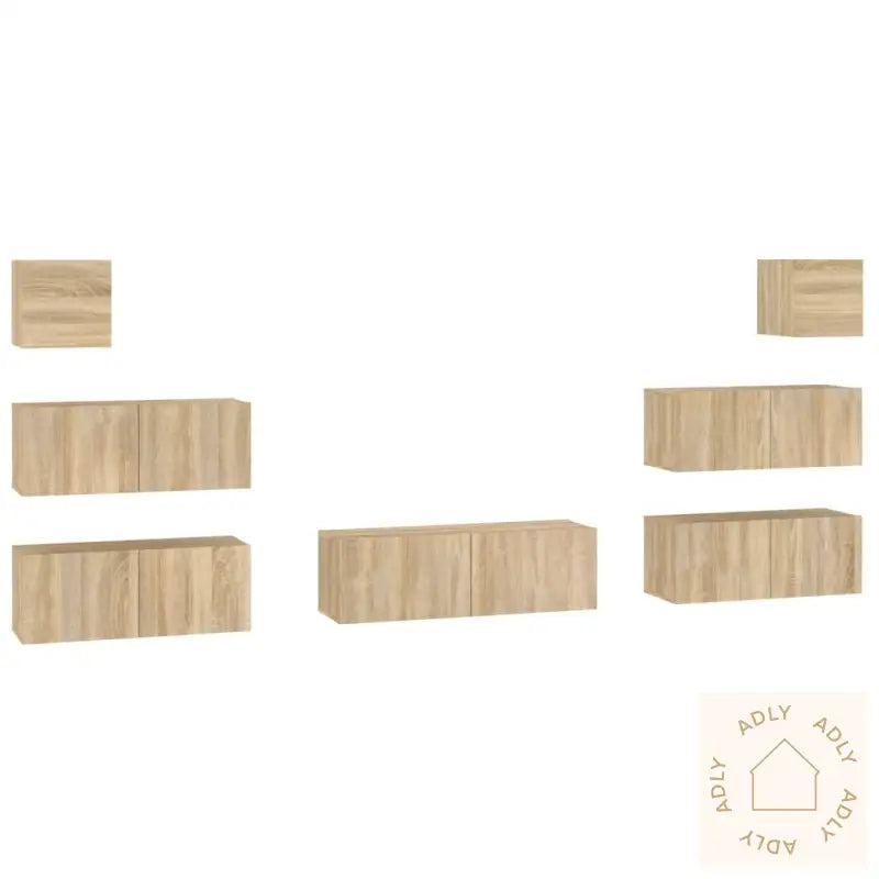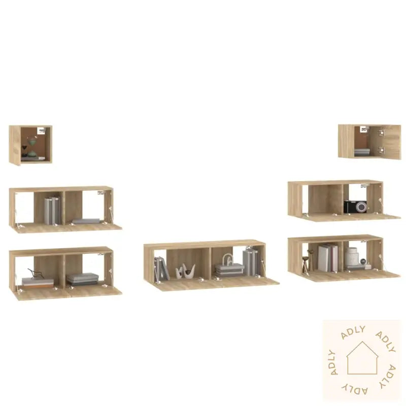 Skrue(r) og plugg(er) for selve veggmonteringen følger ikke med i pakken. Husk å bruke riktig type festemateriell til nettopp dine vegger. Er du usikker, anbefales det å kontakte fagfolk. Følg instruksjonene nøye ved montering.Alle produkter leveres med en tydelig monteringsveiledning for å gjøre oppsettet enkelt for deg.Farge: sonoma eik gir en naturlig og varm tone som passer fint sammen med både bokhyller og stående hyller i samme finish.Materiale: konstruert tre som sørger for stabilitet og holdbarhet.Pakken inneholder:2 x TV-benker: 80 x 30 x 30 cm (L x B x H)1 x TV-benk: 100 x 30 x 30 cm (L x B x H)2 x TV-benker: 30,5 x 30 x 30 cm (L x B x H)Oppgrader stuen med dette funksjonelle og romslige TV-benksettet i sonoma eik. Kombinasjonen av smart oppbevaring, moderne design og slitesterkt materiale gjør dette settet perfekt for deg som er opptatt av stil og orden blant dine møbler til hjemmet.