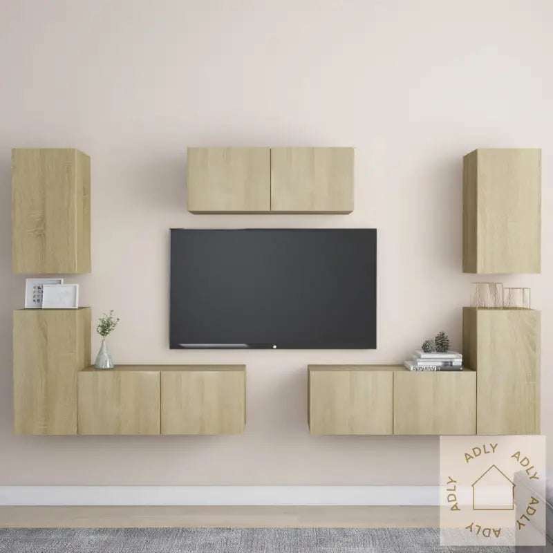 TV-benken monteres på veggen, noe som gir en tidsriktig look og sparer gulvplass – ideelt for både mindre og større rom. Med sine smarte oppbevaringsmuligheter er det enkelt å organisere bøker, magasiner, DVD-er og andre ting du trenger lett tilgjengelig. Perfekt for deg som ønsker effektive oppbevaringsløsninger sammen med flott design i sonoma eik. Overflatene er enkle å holde rene – dra bare over med en fuktig klut, så holder de seg fine lenge. Dette TV-benksettet gir deg møbler som både ser bra ut og er praktiske i hverdagen.