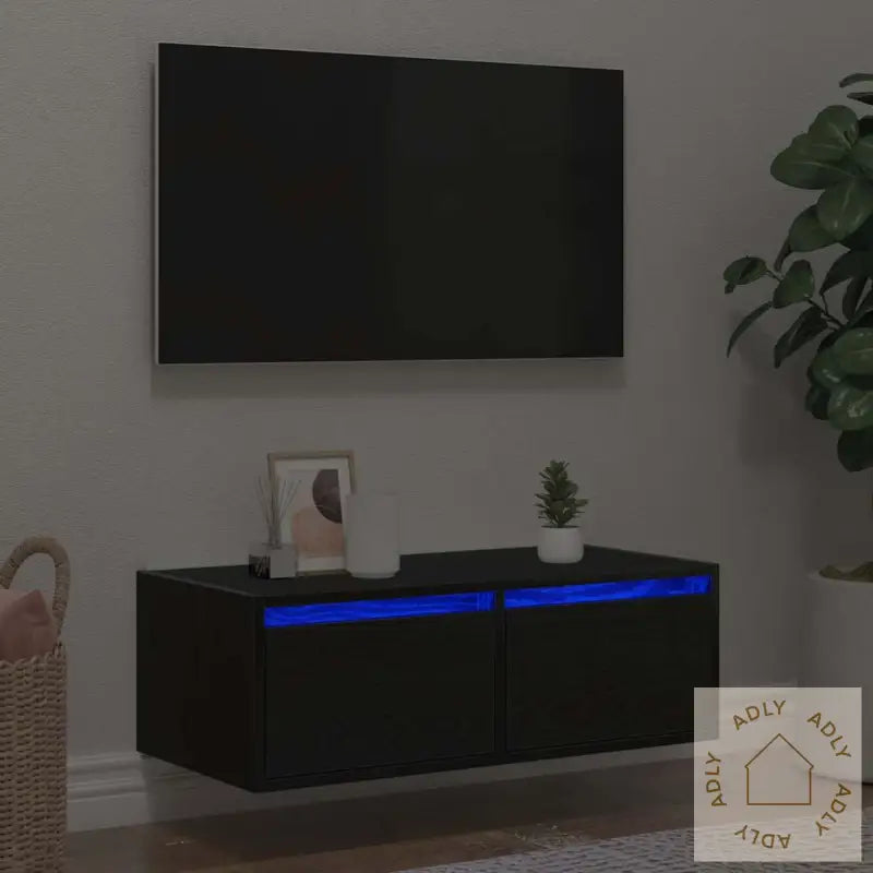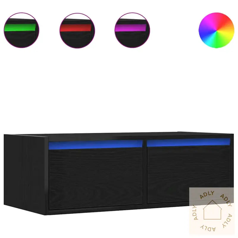 Stabilt og slitesterkt materiale: Benken er laget av konstruert tre, kjent for sin styrke og stabilitet. Dette materialet har en jevn overflate, tåler daglig bruk godt og motstår både fuktighet, vridning og sprekker, så du får en solid løsning som varer lenge. Det gjør dette produktet til et gjennomtenkt valg for de som vil ha vedlikeholdsvennlige kvalitetsmøbler til hjemmet.Rikelig med oppbevaringsplass: Med denne TV-benken får du romslige oppbevaringsmuligheter til alt fra magasiner, bøker, DVD-er til multimedieenheter. Alt kan holdes organisert og lett tilgjengelig, slik at stuemiljøet holder seg ryddig.RGB LED-lys for en hyggelig atmosfære: Skapet leveres med justerbare RGB LED-lys, som lar deg enkelt tilpasse både modus, farger og lysstyrke. Dette gir et personlig og spennende lysspill som løfter stemningen i rommet, enten det er filmtid eller sosial sammenkomst.Plassbesparende: Ved å veggmontere TV-skapet frigjør du verdifull gulvplass og får ekstra lagringsmuligheter uten at det virker rotete. Genialt hvis du ønsker et luftig og moderne uttrykk.Enkel å vedlikeholde: Denne TV-benken er superlett å holde ren – bare tørk over med en fuktig klut, så holder den seg pen med minimalt vedlikehold.Godt å vite: