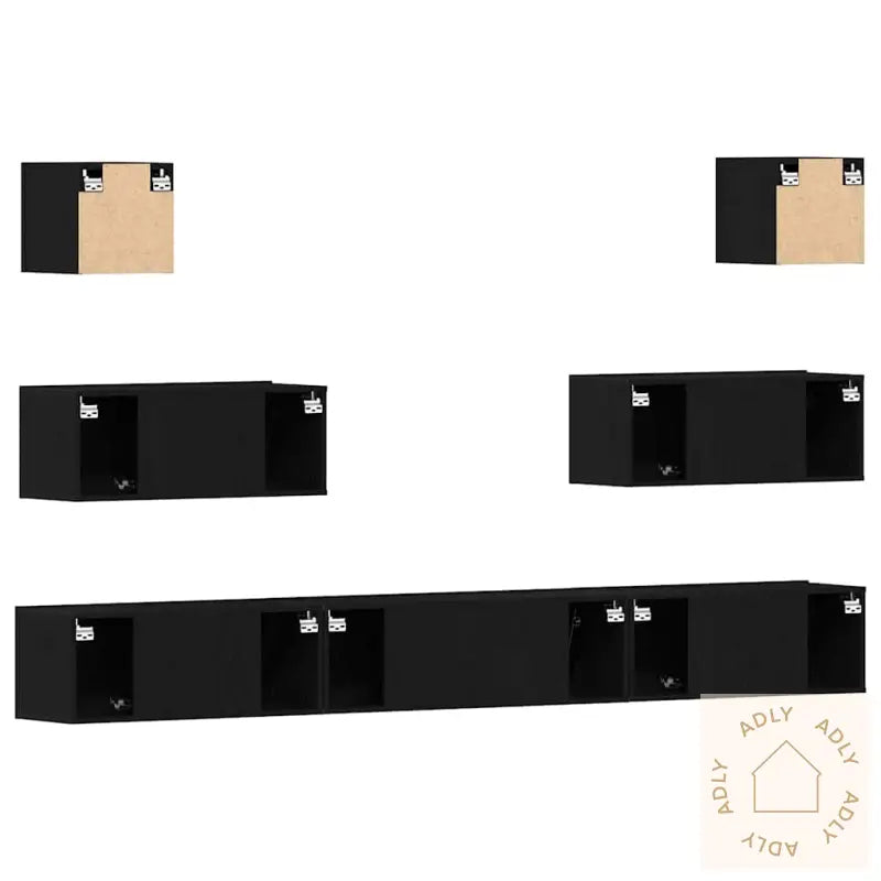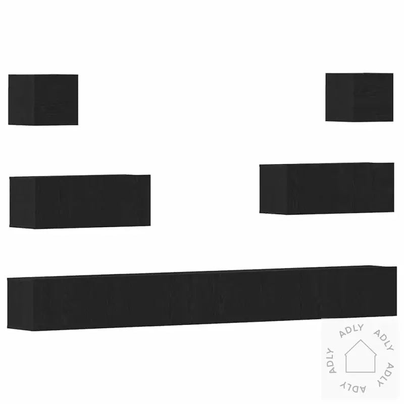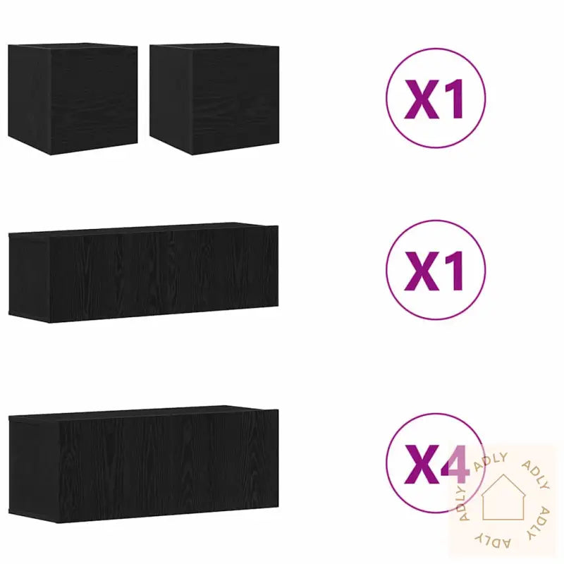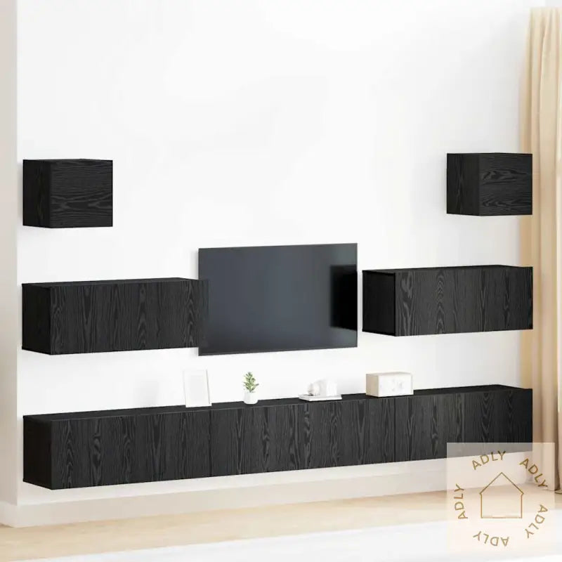 Gi stua et løft med vidaXL sitt 7-delte TV-skapsett i stilren svart eik-finish. Dette skapsettet kombinerer moderne, minimalistisk design med langvarig kvalitet laget av konstruert tre. Den sorte, matte overflaten gir et eksklusivt preg til interiøret og gjør det enkelt å holde rent – perfekt for deg som ønsker praktiske og slitesterke møbler til hjemmet.