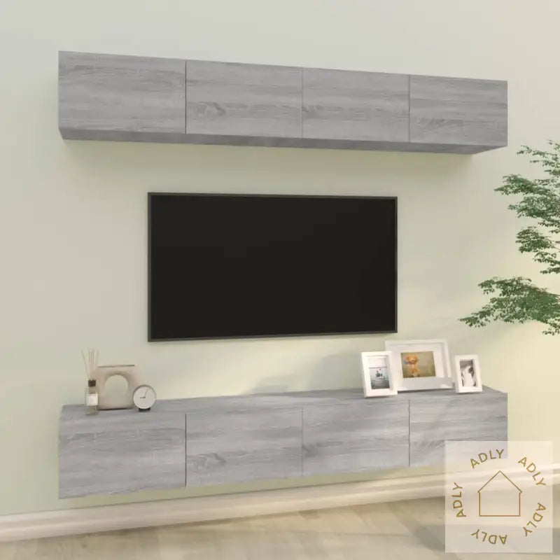 Skrue(r) og plugg(er) til montering i vegg følger ikke med. Husk å bruke riktige skrue(r) og plugg(er) for din veggtype. Kontakt fagfolk dersom du er usikker på monteringen. Det er viktig å lese og følge instruksjonsheftet nøye for et trygt og varig resultat.Alle produkter leveres med brukervennlig monteringsveiledning for enkel og rask montering, slik at du kan ta i bruk de nye TV-benkene dine som en naturlig del av dine øvrige møbler.Farge: grå eikMateriale: konstruert treMål (hver): 100 x 30 x 30 cm (B x D x H)Leveransen inneholder:4 x vegghengte TV-benker