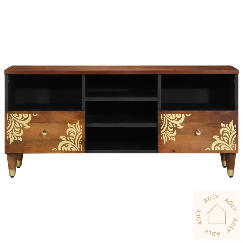 Dette TV-skapet kombinerer funksjonalitet med et moderne og innbydende design, perfekt for stuen eller mediarommet. Skapet har en varm honningbrun finish som gir møbelet et eksklusivt preg, mens de dekorative detaljene sørger for at det skiller seg ut som et lekkert blikkfang. Du får rikelig med plass til medieutstyr, spill, DVD-er og småting, slik at det alltid ser ryddig ut hjemme hos deg. Den smarte utformingen gjør det enkelt å organisere alt på ett sted, samtidig som du får en flott balanse mellom stil og praktisk bruk.