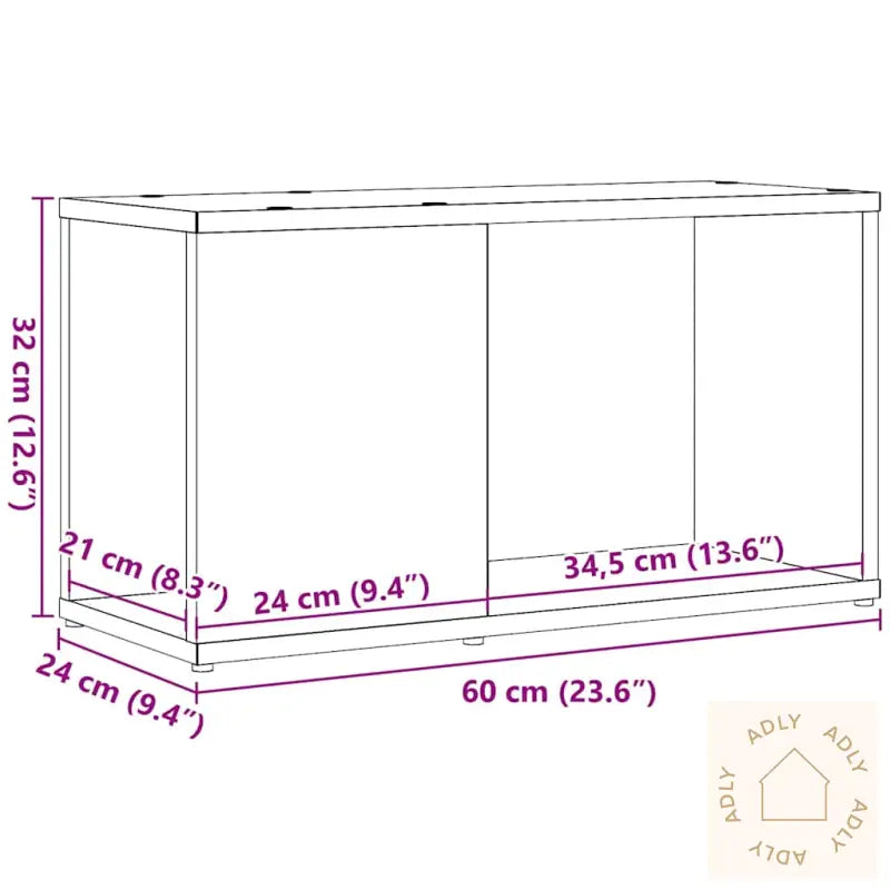 Stabilt og slitesterkt materiale: Skapet er laget av konstruert tre, et robust materiale som tåler daglig bruk. Den jevne overflaten er motstandsdyktig mot både fuktighet, vridning og sprekker, så du kan stole på at TV-benken holder seg pen lenge.Rikelig med lagringsplass: Med flere åpne rom gir skapet deg godt med plass til å organisere DVDer, spillkonsoller, magasiner og annet tilbehør – alt lett tilgjengelig og samlet på ett sted.Solid topp: Topplaten gir god plass til å vise frem bilder, planter eller pyntegjenstander, slik at du enkelt kan tilføre din personlige stil.Bredt bruksområde: I tillegg til å fungere som TV-benk kan dette medieskapet også brukes som en liten bokhylle eller et oppbevaringsmøbel på kontoret eller soverommet. Den tidløse finishen i svart eik matcher de fleste interiør og hjelper deg å skape et ryddig og harmonisk rom.Enkel å vedlikeholde: Overflaten på TV-benken trenger minimalt med vedlikehold – bare tørk over med en fuktig klut for å holde den ren og fresh.Farge: svart eikMateriale: konstruert treMål: 60 x 24 x 32 cm (B x D x H)Montering kreves: ja
