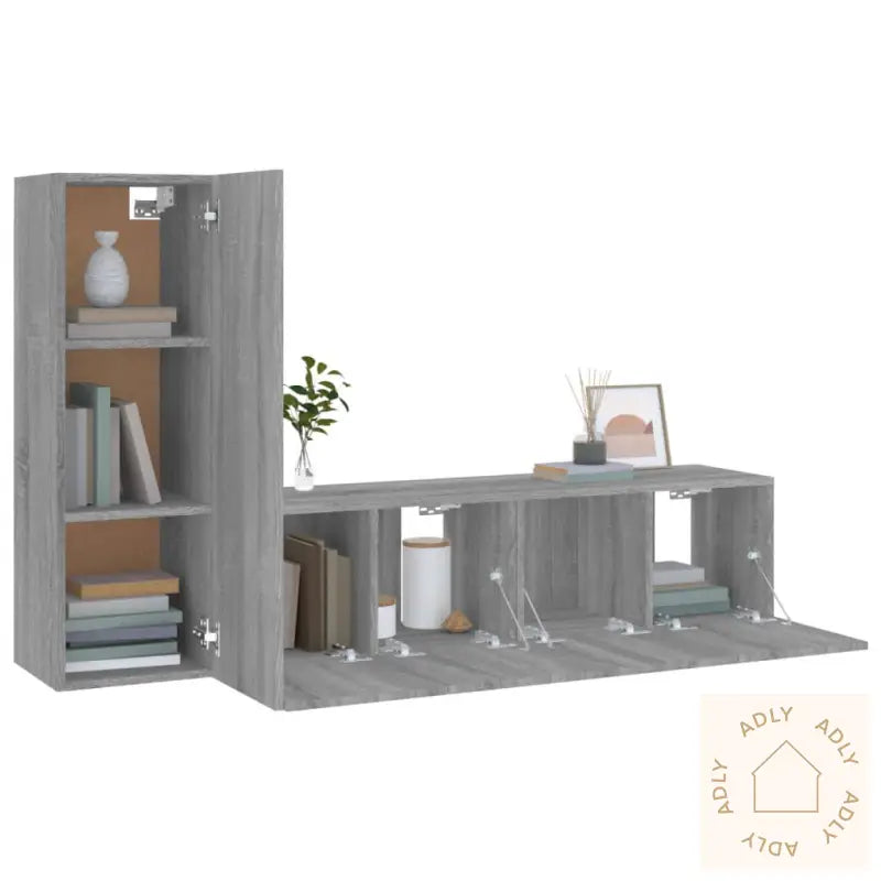 Veggmontert design: Medieskapene henges enkelt rett på veggen og frigjør dermed verdifull gulvplass. Det minimalistiske uttrykket gir rommet et luftig preg, og passer godt sammen med bokhyller og stående hyller i samme serie eller stil.