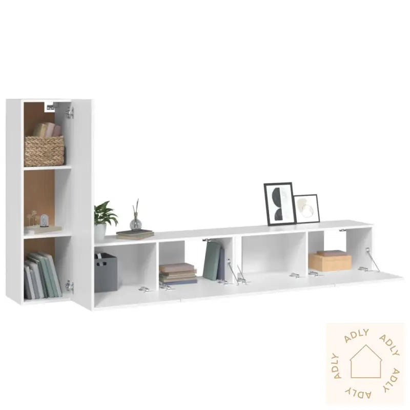 Solid materiale: Benkene er laget av konstruert tre som gir styrke, god holdbarhet og motstand mot fuktighet. Overflaten er glatt og enkel å vedlikeholde, noe som gjør disse benkene perfekte som møbler til hjemmet der slitestyrke er viktig.God lagringsplass: Med flere hyller og skjulte rom har du rikelig med plass til både magasiner, fjernkontroller, spill, DVD-er og andre småting. Det hjelper deg å skape et organisert og pent miljø sammen med andre møbler.Veggmontert design: Ønsker du åpne gulvflater hjemme eller ekstra plass til andre utendørsmøbler eller hagemøbler, er dette løsningen. Det veggmonterte designet frigjør gulvplass og gir rommet et rent og stilrent uttrykk.Praktiske dører: Oppbevar nødvendig tilbehør bak lukkede dører for å beskytte dem mot støv og sørge for et ryddig inntrykk. Alt ligger skjult og lett tilgjengelig når du trenger det.Merk: