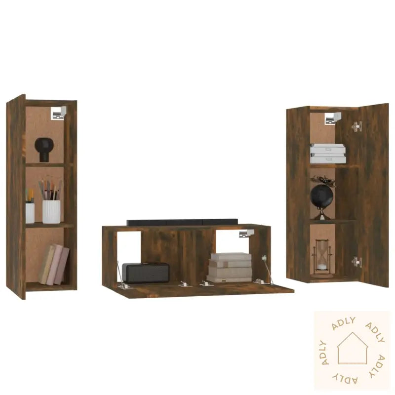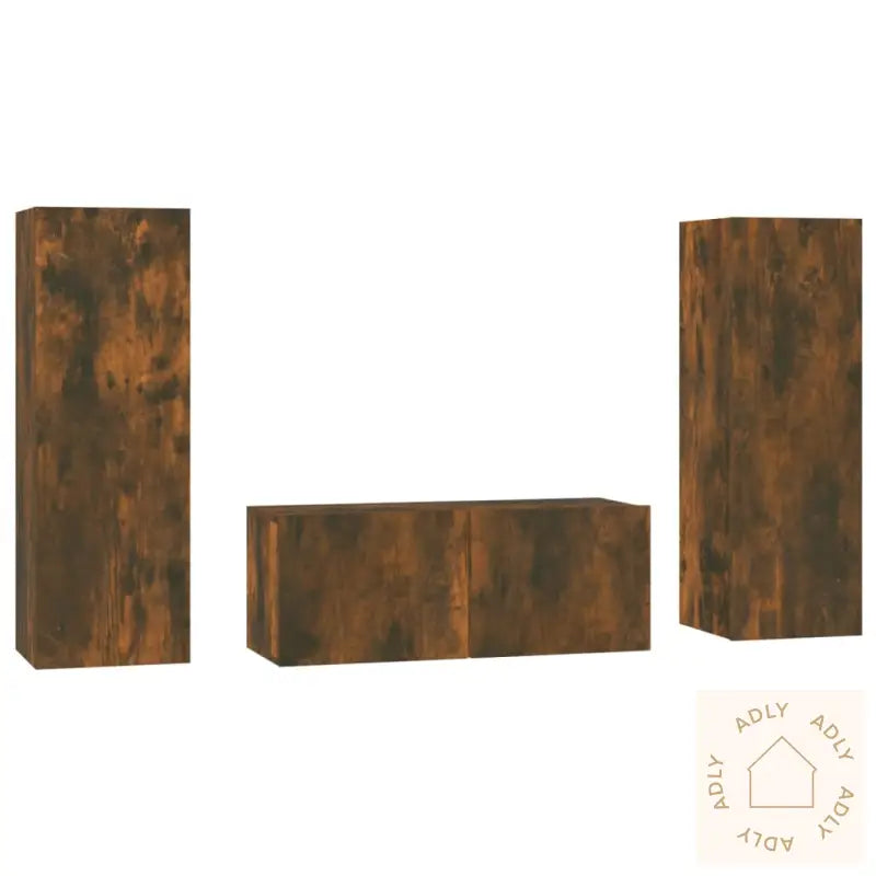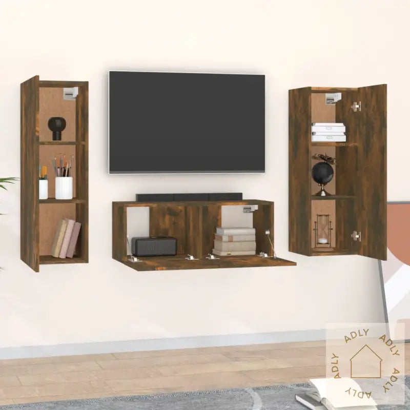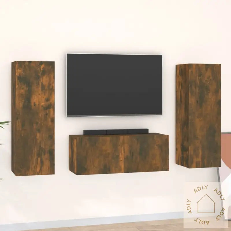 Skruer og plugger til vegg følger ikke med. Finn og bruk skruer og plugger som passer til din veggtype. Er du usikker på hvordan du skal montere, anbefales det å spørre fagfolk. Følg alltid instruksjonene i pakken nøye for trygg og enkel montering.Monteringsveiledning følger med hvert produkt, slik at du enkelt setter sammen ditt nye møbel.Farge: Røkt eikMateriale: Konstruert treDu får:1 x TV-skap: 80 x 30 x 30 cm (B x D x H)2 x TV-benk: 30,5 x 30 x 90 cm (B x D x H)Gi hjemmet ditt et løft med dette praktiske og stilrene settet, spesielt tilpasset for deg som ønsker smarte møbler til hjemmet med funksjonell lagring og gjennomført look. Ideelt både alene og sammen med andre møbler, enten det er til stue, soverom eller loftstue.