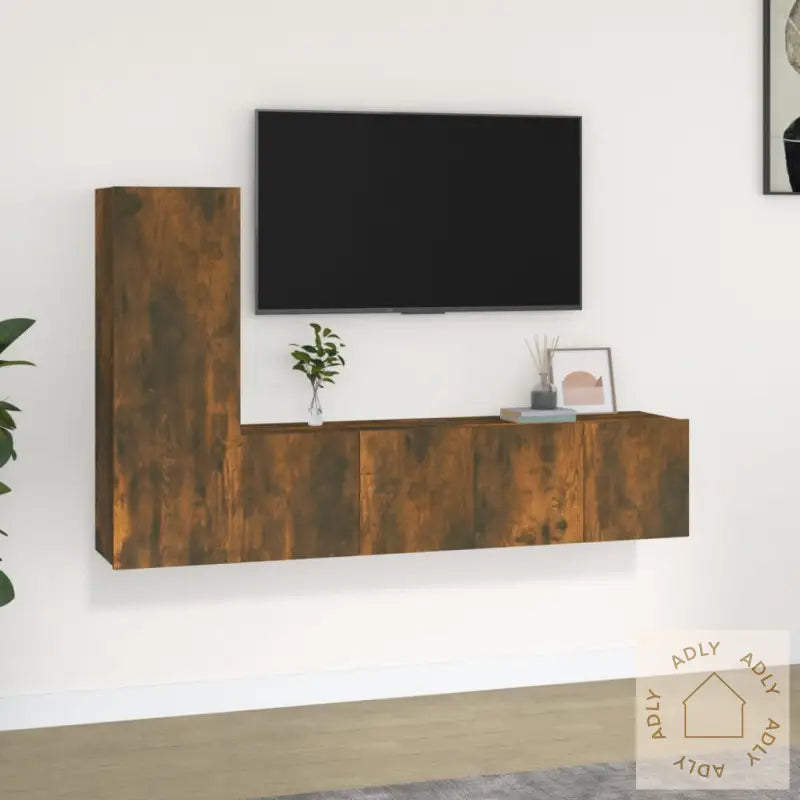 Solid materiale: Konstruert treverk gir disse TV-benkene en slitesterk og stabil konstruksjon som tåler daglig bruk. Den glatte overflaten er enkel å holde ren, samtidig som materialet motstår fuktighet – noe som gjør dem både robuste og praktiske som møbler.Rikelig med lagringsplass: Med flere rom og hyller får du god plass til å organisere blader, fjernkontroller, DVD-er og andre småting, slik at alt har sin faste plass og stuen alltid fremstår ryddig og innbydende.Veggmontert design: Siden benkene kan festes på veggen, får du mer ledig gulvplass og et luftigere rom. Dette gir en fleksibel innredning hvor du enkelt kan rengjøre under møblet.Praktiske dører: Skapene har dører som holder tingene dine beskyttet mot støv og lys, slik at stua ser ordentlig ut uten at det går på bekostning av tilgjengeligheten. Perfekt for deg som vil kombinere stil og funksjonalitet i hjemmets møbler.Merk: