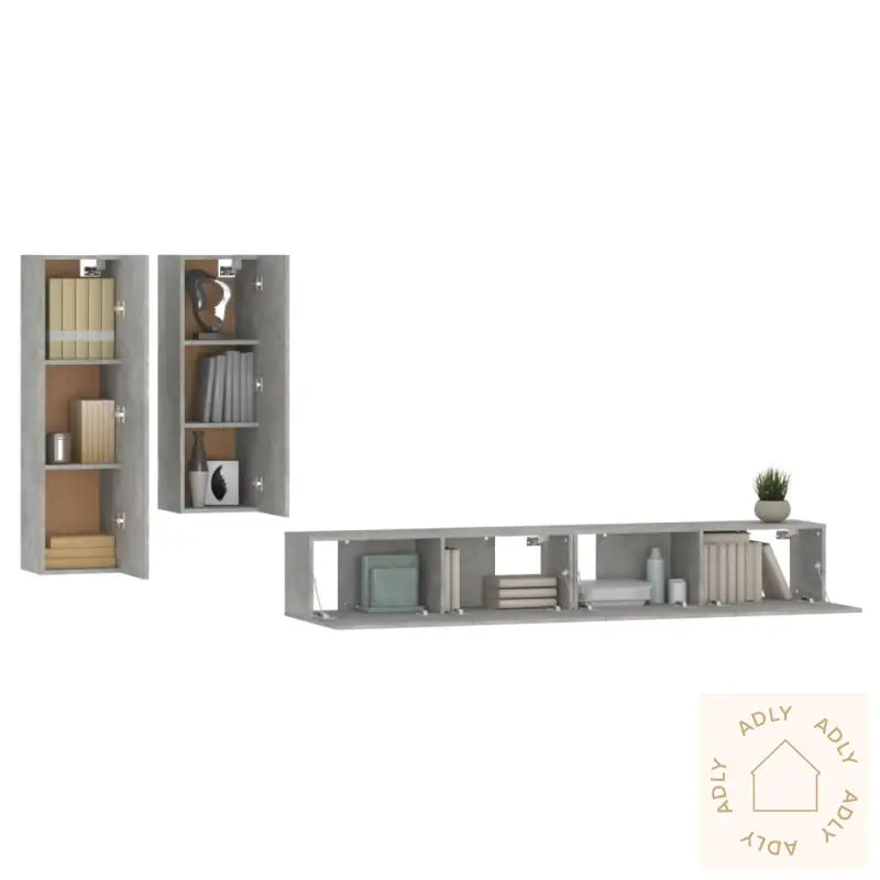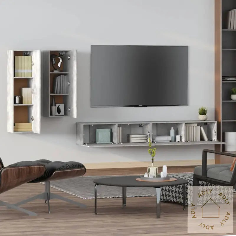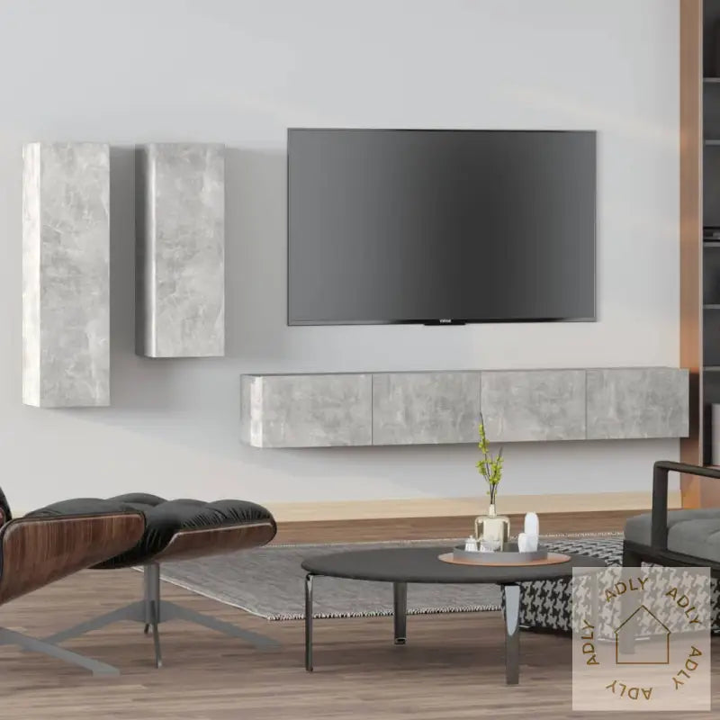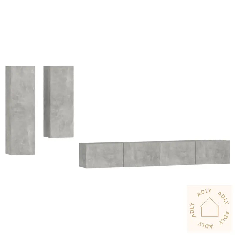 Skrue(r) og plugg(er) til montering i veggen medfølger ikke. For best resultat, velg skruer og plugger som passer for akkurat dine vegger. Er du i tvil, anbefales det å rådføre seg med en fagperson. Pass på å lese og følge monteringsanvisningen steg for steg.Alle deler leveres med brukervennlig monteringsveiledning i esken, slik at du enkelt kan sette sammen møblene selv.Farge: betonggråMateriale: konstruert treLeveransen inneholder:1 x TV-benk: 30,5 x 30 x 110 cm (L x B x H)1 x TV-benk: 30,5 x 30 x 90 cm (L x B x H)2 x TV-benker: 100 x 30 x 30 cm (L x B x H)