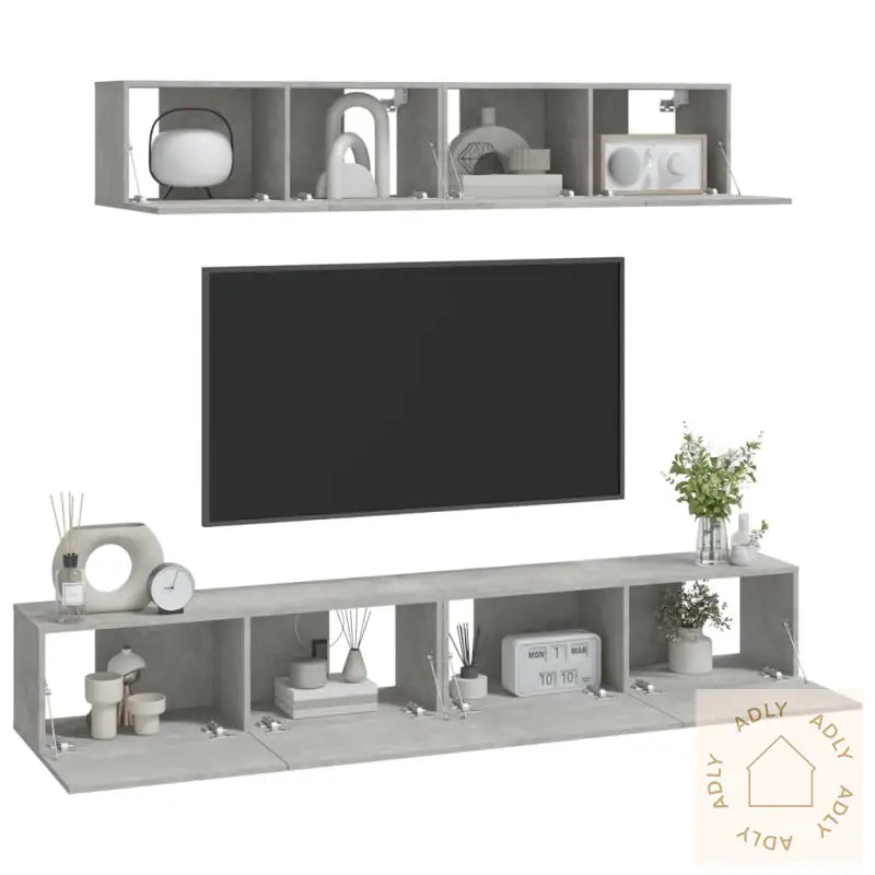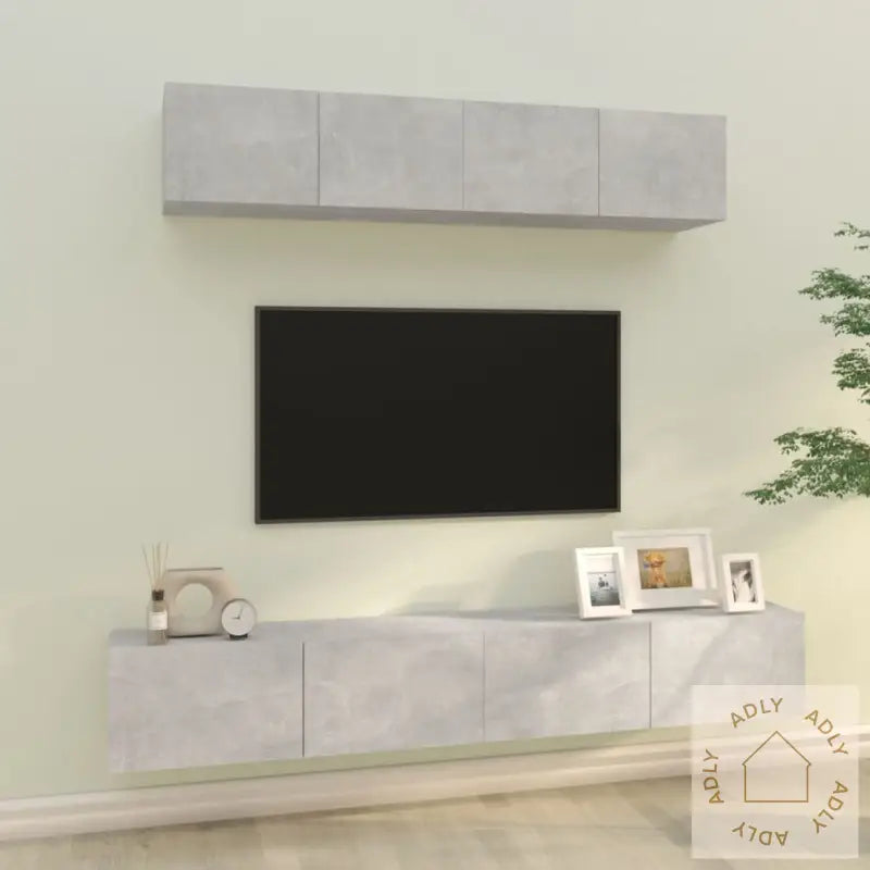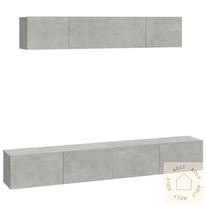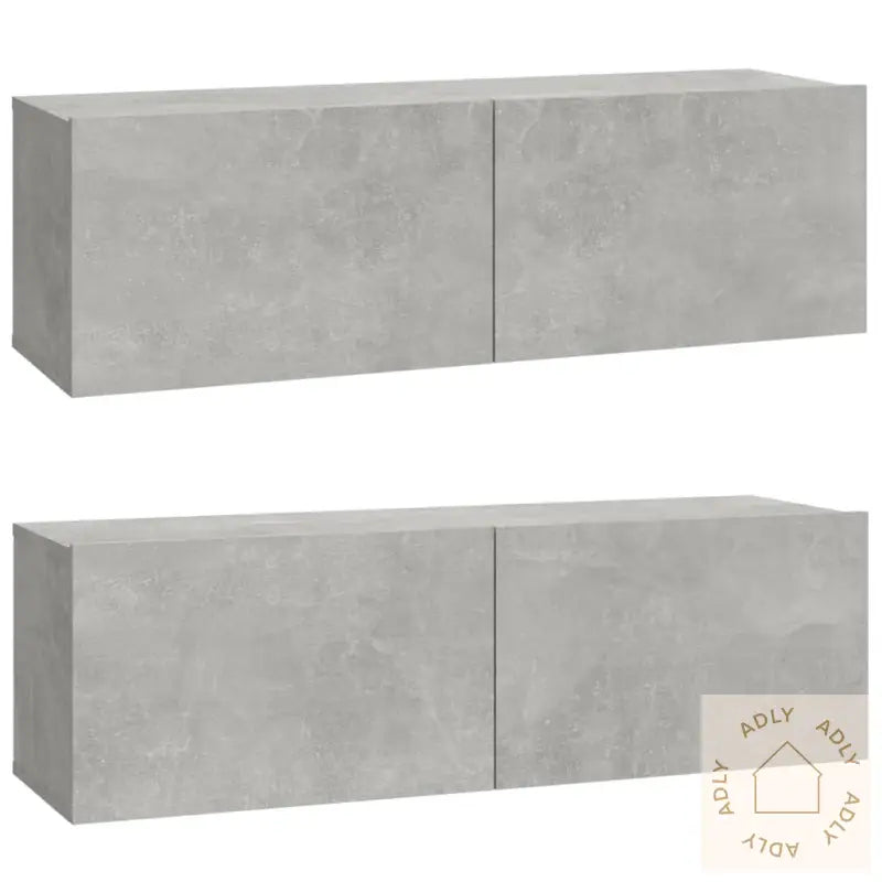 Skrue(r) og plugg(er) for å feste TV-benkene til veggen følger ikke med. Husk å bruke passende skruer og plugger til din type vegg. Ved usikkerhet anbefaler vi å få råd av en fagperson. Følg monteringsinstruksjonene nøye for et trygt og stabilt resultat.Alle produkter leveres med en brukervennlig monteringsveiledning slik at du enkelt kan sette sammen dine nye møbler selv.Farge: betonggrå – en trendy og moderne farge som passer de fleste interiørstiler og matcher fint med andre møbler eller bokhyller og stående hyller.Materiale: Konstruert tre, kjent for sin holdbarhet og en overflate som er enkel å rengjøre. Perfekt for daglig bruk i norske hjem.Leveransen inneholder:2 x TV-benker, størrelse: 80 x 30 x 30 cm (L x B x H)2 x TV-benker, størrelse: 100 x 30 x 30 cm (L x B x H)