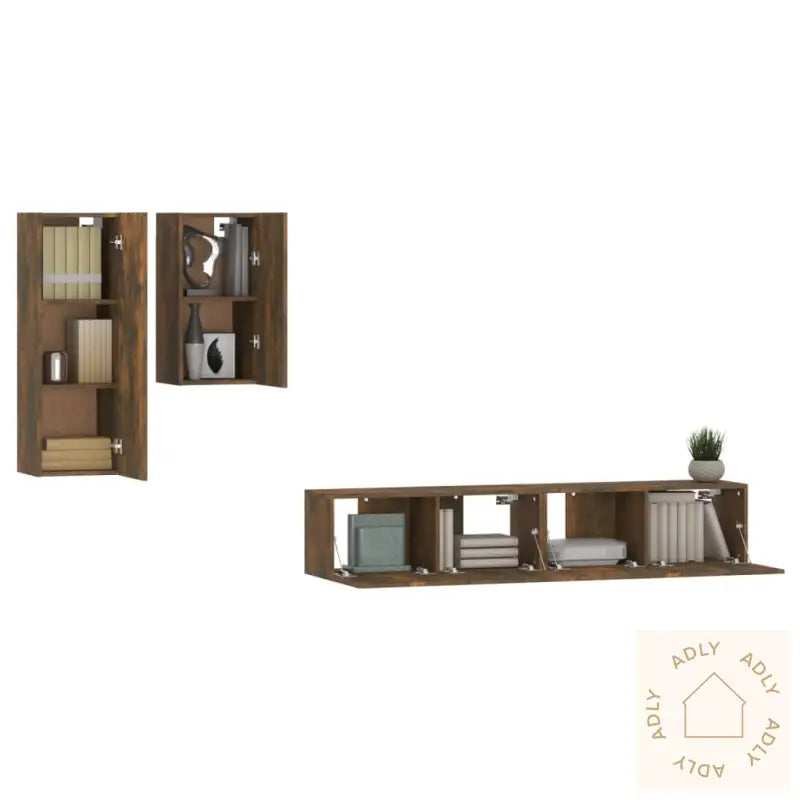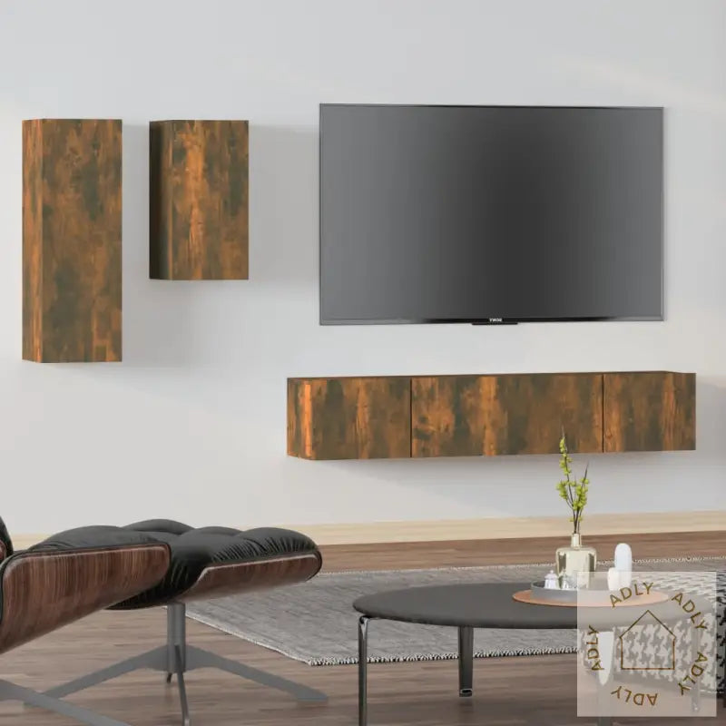 Skrue(r) og plugg(er) for montering i vegg følger ikke med. Velg skruer og plugger som passer til akkurat din veggtype, og spør gjerne fagfolk om råd om du er usikker. Følg alltid veiledningen nøye for å sikre trygg montering.Hver pakke inkluderer enkel og tydelig monteringsveiledning, så du kan sette sammen møblene uten problemer.Farge: røkt eikMateriale: konstruert treLeveransen inneholder:1 x TV-benk: 30,5 x 30 x 90 cm (L x B x H)1 x TV-benk: 30,5 x 30 x 60 cm (L x B x H)2 x TV-benker: 80 x 30 x 30 cm (L x B x H)Gi stuen et løft med stilrene og praktiske møbler til hjemmet, og skap en organisert og innbydende atmosfære sammen med dine favoritter av bokhyller og stående hyller.