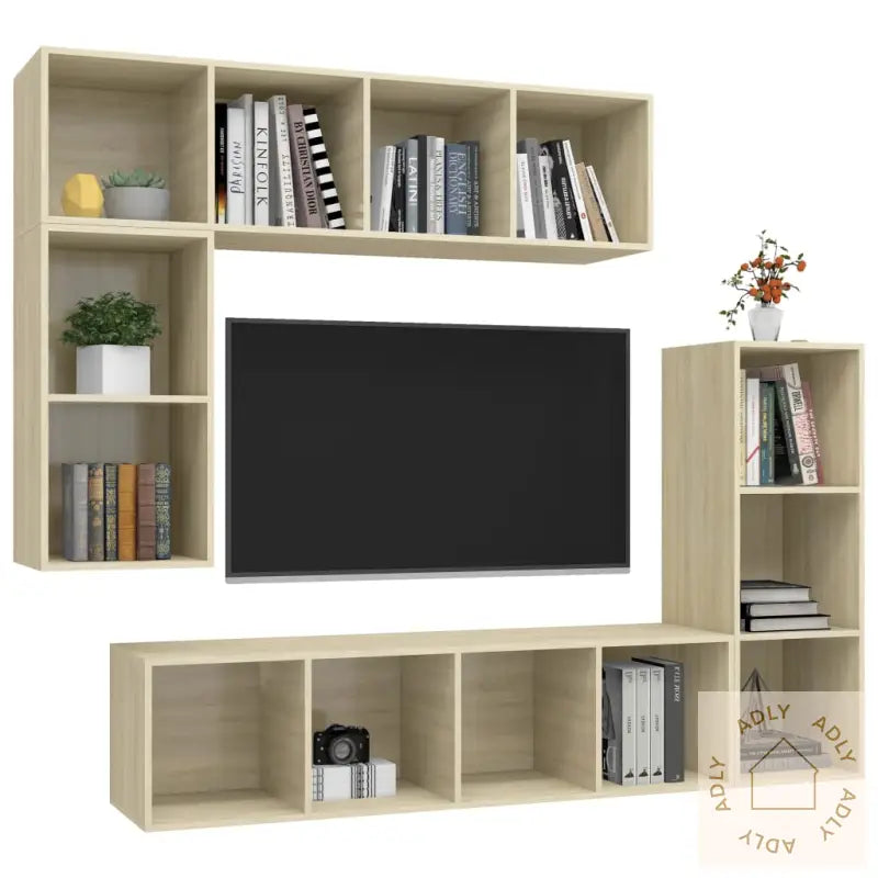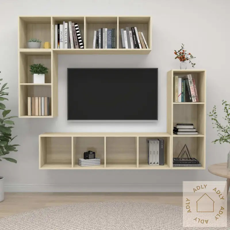 Dette vegghengte TV-benksettet i sonoma eik gir masse oppbevaringsplass for å holde alt fra fjernkontroller og medier til dekorative gjenstander organisert. Med sitt moderne og stilrene design er settet et praktisk og iøynefallende valg blant møbler til hjemmet, spesielt hvis du vil kombinere funksjonalitet med et tidløst uttrykk.