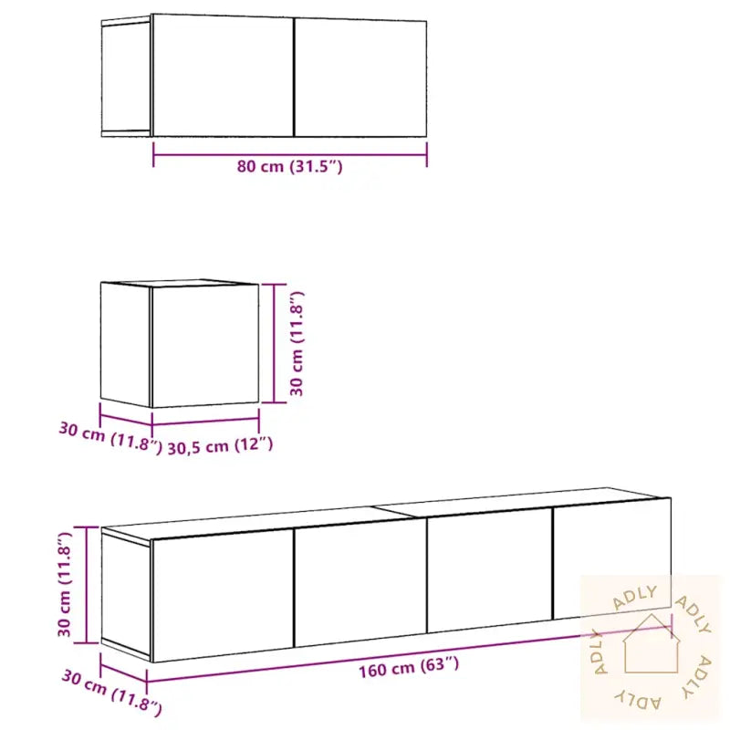 Skruer og plugger for veggmontering er ikke inkludert. Velg festeutstyr som passer veggtypen din. Hvis du er usikker, anbefaler vi å spørre fagfolk. Følg alltid monteringsanvisningen nøye.Farge: artisan eikMateriale: konstruert treMontering kreves: jaLeveransen inneholder:1 x TV-benk: 30,5 x 30 x 30 cm (B x D x H)3 x TV-skap: 80 x 30 x 30 cm (B x D x H)
