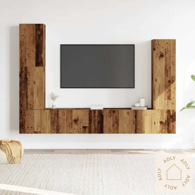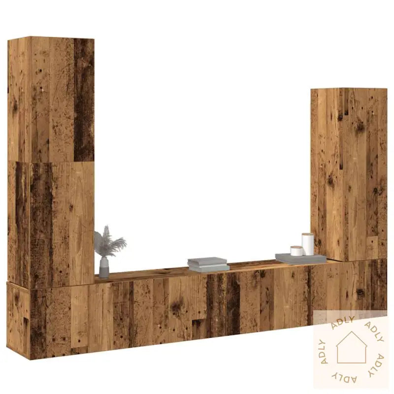 Skruer og plugger for veggmontering følger ikke med. Velg skruer og plugger som passer til akkurat dine vegger, og om du er usikker, anbefaler vi å rådføre deg med profesjonell hjelp. Husk å følge monteringsanvisningen nøye for et sikkert og varig resultat.Farge: gammelt treMateriale: konstruert treMontering kreves: jaLeveransen inneholder:1 x TV-benk: 30,5 x 30 x 110 cm (B x D x H)1 x TV-benk: 30,5 x 30 x 90 cm (B x D x H)2 x TV-skap: 100 x 30 x 30 cm (B x D x H)Dette TV-benksettet gir deg både stil, lagringsplass og fleksibilitet – et praktisk tilskudd til alle som vil oppgradere sine møbler til hjemmet, og som ser etter løsninger som matcher andre møbler, hagemøbler eller eksisterende interiør.