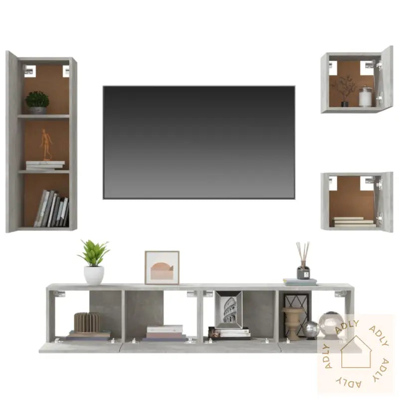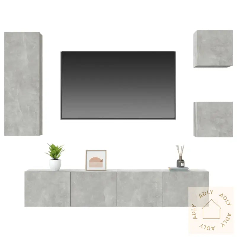 Skrue(r) og plugg(er) for montering i vegg følger ikke med. Husk å bruke festemidler som er egnet for akkurat din veggtype for å sikre stabil montering. Er du usikker, kan det være lurt å kontakte en fagperson. Les alltid gjennom hele monteringsveiledningen nøye før du går i gang.Alle produktene leveres med en tydelig monteringsanvisning i esken, slik at du enkelt og raskt får satt opp dine nye møbler.Farge: betonggrå – en trendriktig og moderne nyanse som passer til både eksisterende møbler, hagemøbler og ulike interiørstiler.Materiale: konstruert tre – robust, holdbart og lettstelte overflater.Leveransen inneholder:2 x TV-benker: 30,5 x 30 x 30 cm (L x B x H)1 x TV-benk: 30,5 x 30 x 90 cm (L x B x H)2 x TV-benker: 80 x 30 x 30 cm (L x B x H)