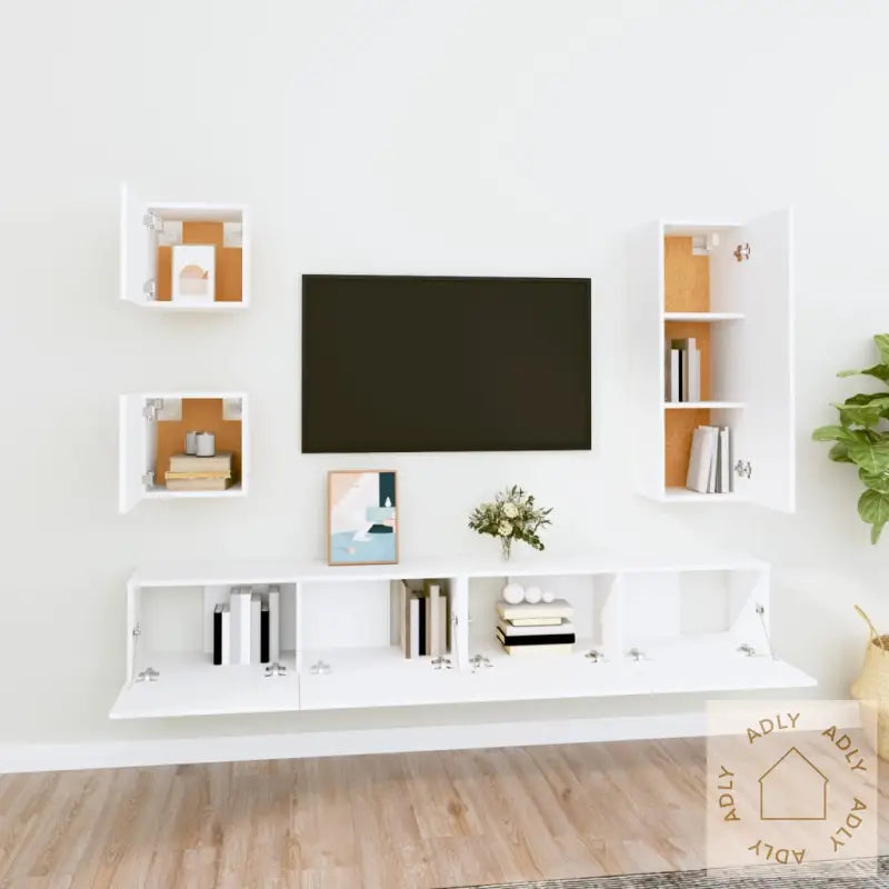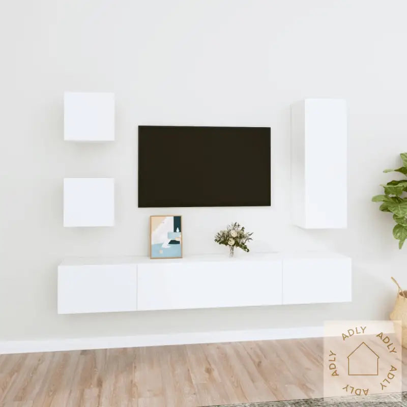 Skrue(r) og plugg(er) til vegg følger ikke med. Finn passende festemidler til din veggtype. Dersom du er usikker, anbefales det å innhente profesjonell hjelp. Følg monteringsinstruksjonen trinn for trinn for et best mulig resultat.Hvert produkt leveres med en lettfattelig monteringsveiledning for enkel og rask montering.Farge: hvitMateriale: konstruert treLeveransen inkluderer:2 x TV-benker: 30,5 x 30 x 30 cm (L x B x H)1 x TV-benk: 30,5 x 30 x 90 cm (L x B x H)2 x TV-benker: 80 x 30 x 30 cm (L x B x H)Klassiske TV-benker i dette settet passer perfekt sammen med andre møbler som bokhyller og stående hyller og gir deg alt du trenger for å skape et komplett rom. Dette er ideelle møbler for deg som vil kombinere funksjon, stil og kvalitet i din innredning.