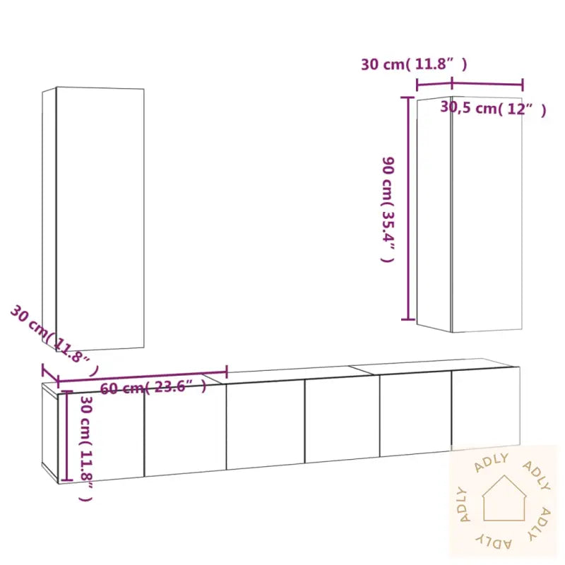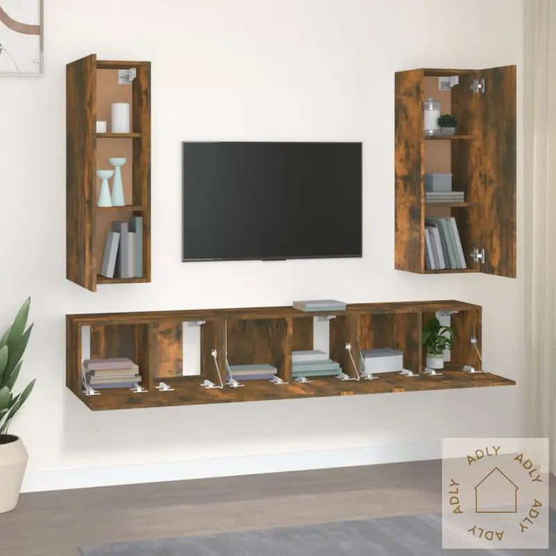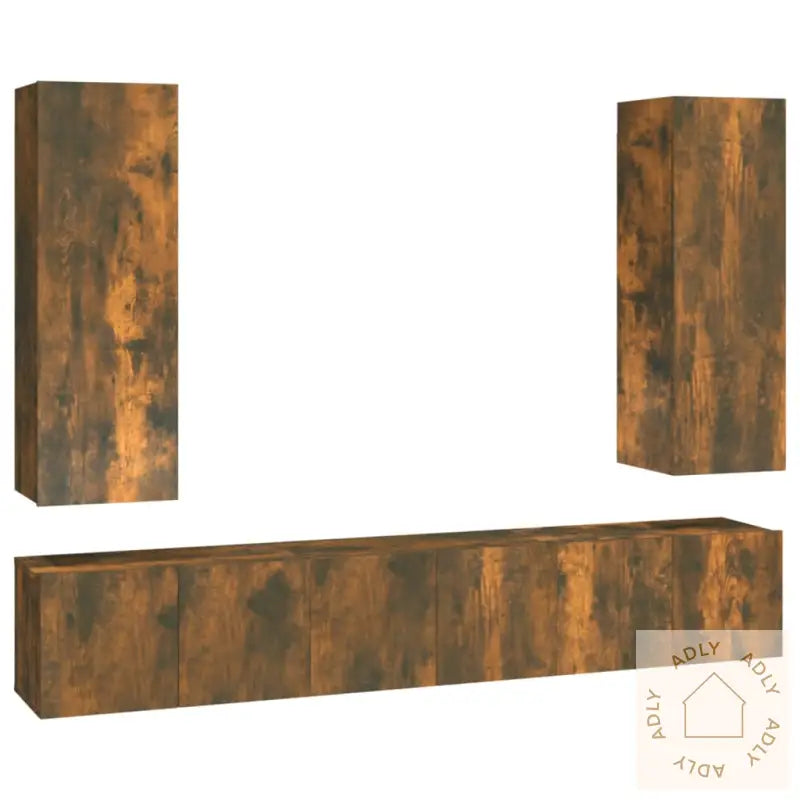 Skrue(r) og plugg(er) til montering i veggen følger ikke med. Velg alltid festemidler som passer til din veggtype – rådfør deg gjerne med fagperson hvis du er i tvil. Følg den medfølgende monteringsveiledningen nøye for et trygt og pent resultat.Alle deler leveres med tydelig monteringsveiledning, noe som gjør det enkelt å sette sammen setter – uansett om du allerede har erfaring med å montere møbler, eller skal gjøre det for første gang.Farge: røkt eik – en varm, tidløs farge som passer de fleste hjem og matcher enkelt med så vel hagemøbler som andre møbler til hjemmet.Materiale: konstruert treLeveransen inkluderer:3 x TV-benker: 60 x 30 x 30 cm (B x D x H)2 x TV-benk: 30,5 x 30 x 90 cm (B x D x H)