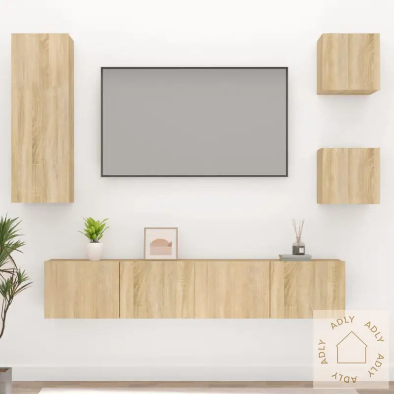 Skrue(r) og plugg(er) for montering på vegg følger ikke med. Sørg for å velge festemidler som passer til akkurat din veggtype. Er du usikker, anbefaler vi å kontakte fagfolk. Følg bruksanvisningen trinn for trinn for best resultat.Alle deler leveres flatpakket sammen med en enkel monteringsveiledning, slik at du lett kan sette opp dine nye møbler til hjemmet uten problemer.Farge: sonoma eikMateriale: konstruert treLeveransen inneholder:2 x TV-benker: 30,5 x 30 x 30 cm (L x B x H)1 x TV-benk: 30,5 x 30 x 90 cm (L x B x H)2 x TV-benker: 80 x 30 x 30 cm (L x B x H)Dette settet i sonoma eik gir deg moderne funksjon, samtidig som du får den varme følelsen av tremøbler. Perfekt valg for deg som ønsker både smarte løsninger og en innbydende atmosfære hjemme eller sammen med andre innendørs eller utendørsmøbler.