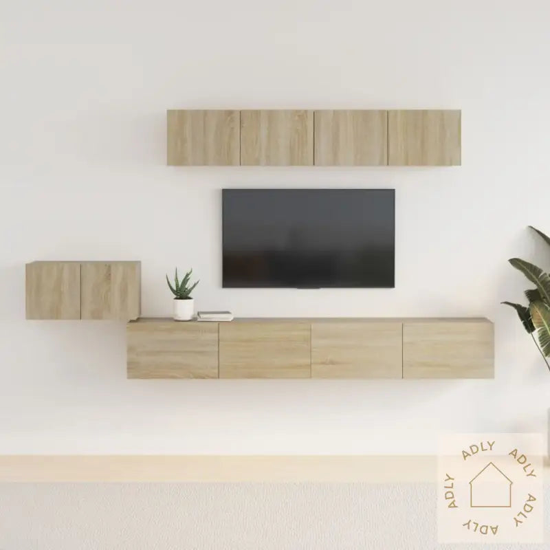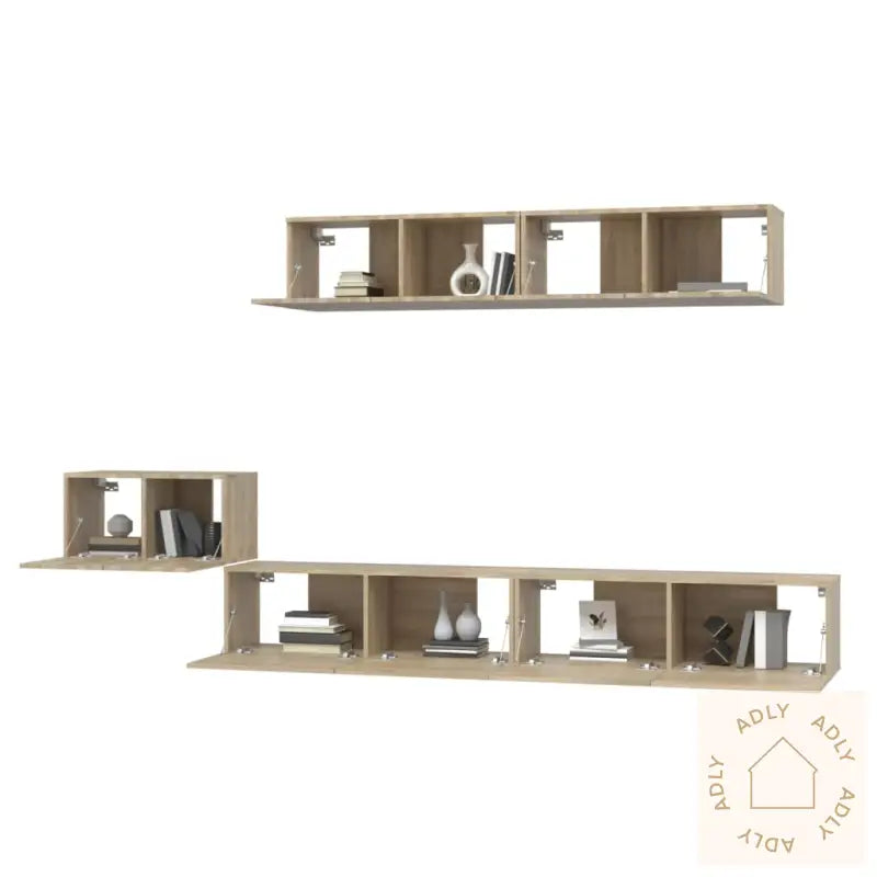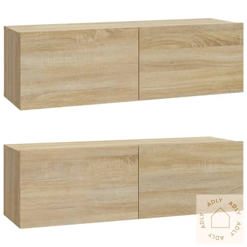 Skrue(r) og plugg(er) til montering i veggen er ikke inkludert. Sørg for å bruke skruer og plugger som er riktige for dine vegger, og spør gjerne en fagperson hvis du er i tvil. Følg instruksjonene i monteringsveiledningen nøye for et trygt og sikkert resultat.Alle deler leveres med en tydelig monteringsveiledning i esken, som gjør monteringen enkel og grei.Farge: Sonoma eik – En varm trefarge som gir ekstra eleganse til møblene og et naturlig preg til hjemmet ditt.Materiale: Konstruert tre – Et robust materiale som tåler daglig bruk.Leveransen inneholder:1 x TV-benk: 60 x 30 x 30 cm (B x D x H)2 x TV-skap: 100 x 30 x 30 cm (B x D x H)2 x TV-skap: 80 x 30 x 30 cm (B x D x H)