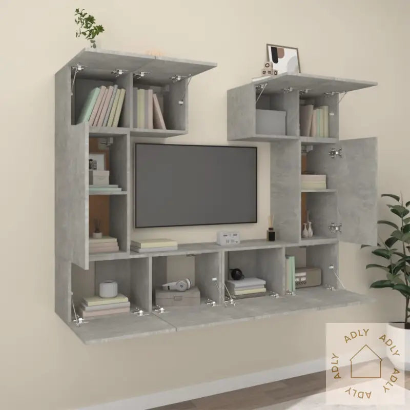 Skrue(r) og plugg(er) for veggmontering følger ikke med, da det er viktig å bruke festemidler som passer til akkurat dine vegger. Usikker? Spør en fagperson. Husk å følge instruksjonene nøye når du setter sammen møblene.Det følger med en brukervennlig monteringsveiledning i pakken, så du enkelt kommer i gang med å sette opp dine nye møbler til hjemmet.Farge: BetonggråMateriale: Konstruert trePakken inkluderer:2 x TV-benker: 60 x 30 x 30 cm (L x B x H)2 x TV-benker: 30,5 x 30 x 60 cm (L x B x H)2 x TV-benker: 80 x 30 x 30 cm (L x B x H)