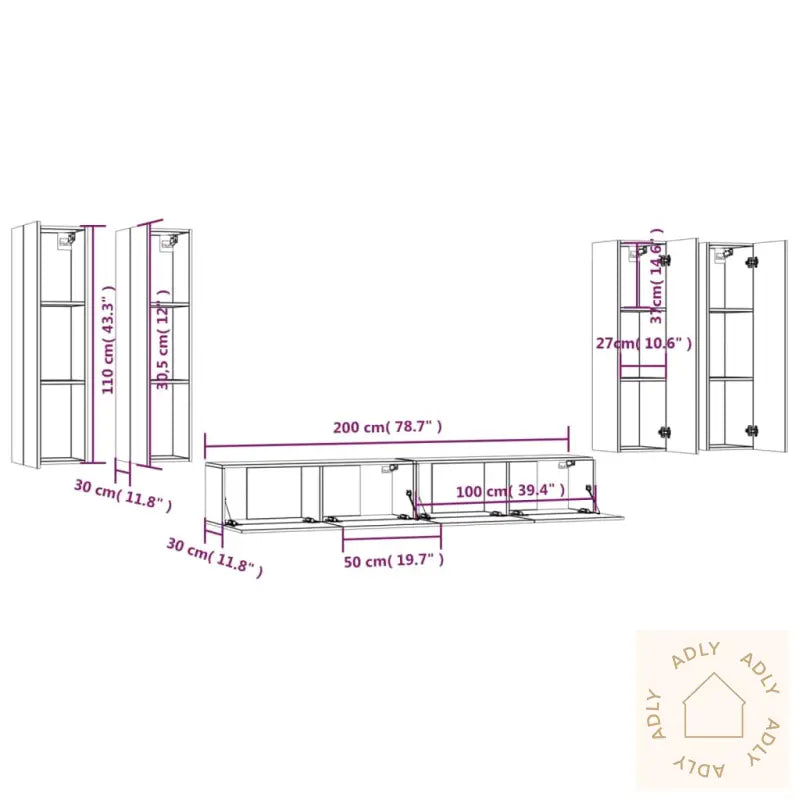 - 4 x TV-benker: 30,5 x 30 x 100 cm (B x D x H)