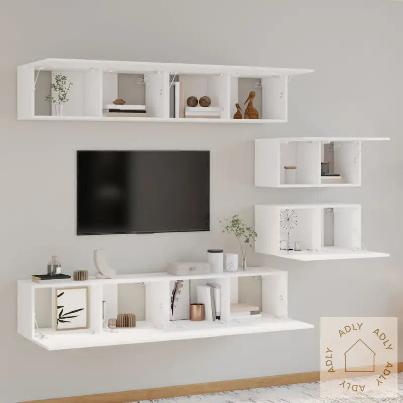Skrue(r) og plugg(er) til innfesting i veggen følger ikke med. Velg passende festemidler til veggtypen din, og spør gjerne fagfolk hvis du er usikker. Følg bruksanvisningen nøye for å få best og tryggest mulig resultat.En monteringsveiledning følger med hvert produkt, så det er enkelt å sette sammen og montere møblene.Farge: HvitMateriale: Konstruert treLeveransen inneholder:4 x TV-benker: 80 x 30 x 30 cm (L x B x H)2 x TV-benker: 60 x 30 x 30 cm (L x B x H)Velg dette TV-benksettet for en praktisk og stilfull løsning blant dine møbler til hjemmet, og få en helhetlig og moderne følelse i stua.