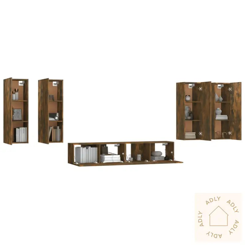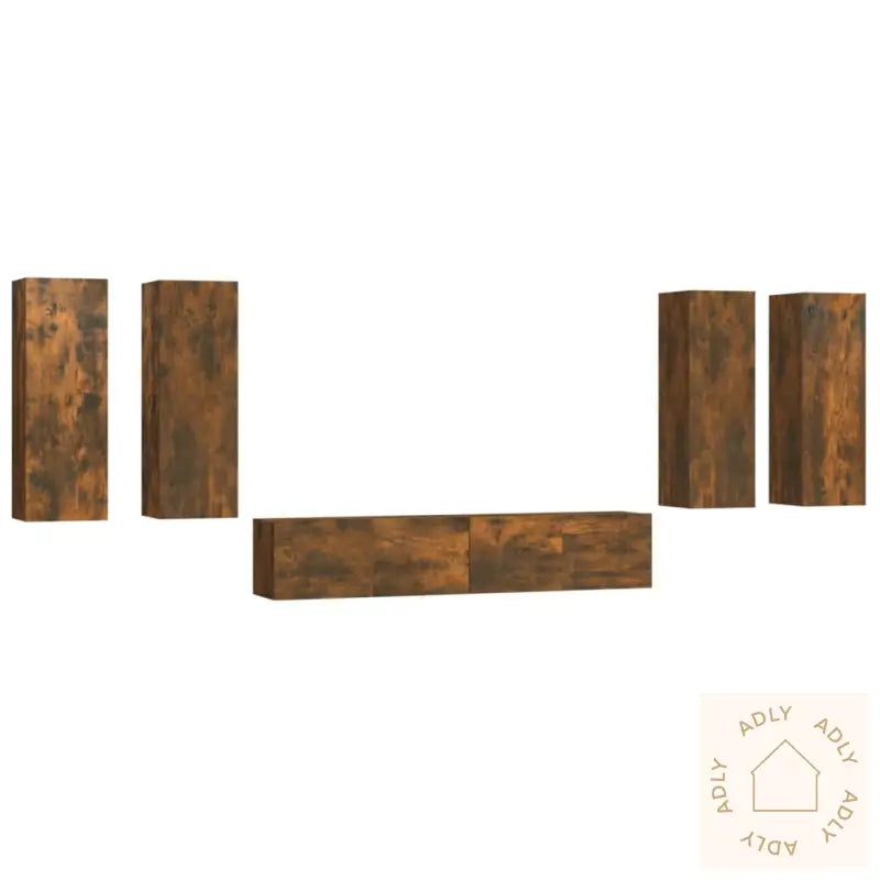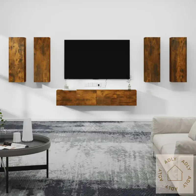 Skrue(r) og plugg(er) for å feste settene til veggen følger ikke med. Bruk fester som er egnet for nettopp dine vegger. Er du usikker, kan det være smart å be en fagperson om råd. Husk å følge instruksjonene nøye.Alle produktene leveres med enkel monteringsveiledning i esken, så du kjapt kan sette sammen dine nye møbler.Farge: Røkt eikMateriale: Konstruert treLeveransen inneholder:2 x TV-skap: 80 x 30 x 30 cm (B x D x H)4 x TV-benk: 30,5 x 30 x 90 cm (B x D x H)