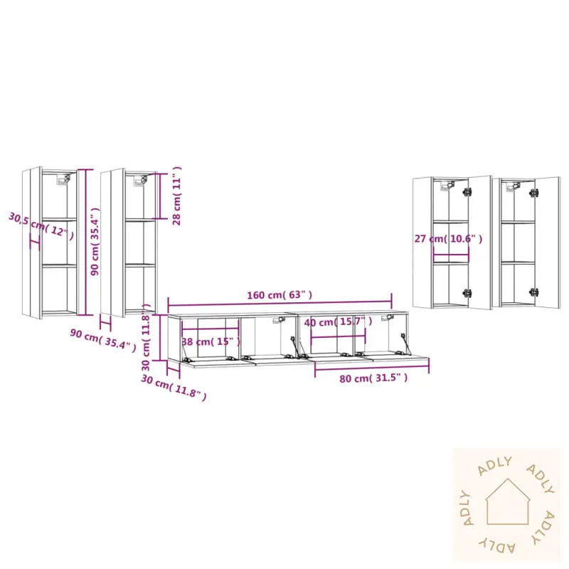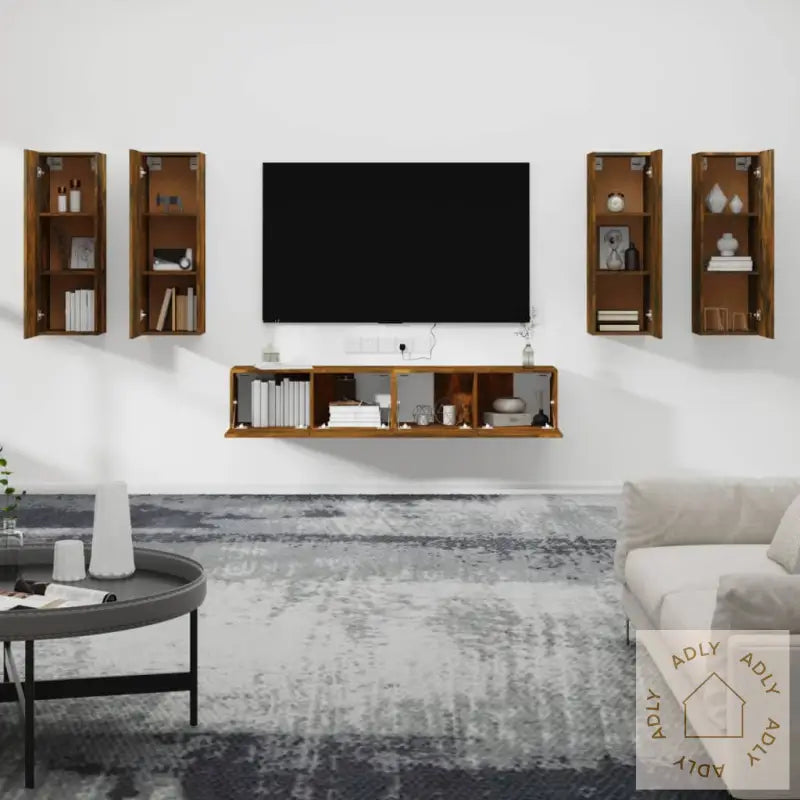 Solid materiale: Settet er laget av konstruert tre av høy kvalitet, som gir en helt jevn overflate. Treverket bidrar til at TV-benkene er stabile, robuste og bestandige mot fuktighet – i tillegg er de superenkle å rengjøre etter behov, akkurat som andre funksjonelle møbler og bokhyller og stående hyller du har hjemme.Rikelig med lagringsplass: Skapene og benkene byr på god plass til oppbevaring, så du enkelt kan holde magasiner, DVD-er, spillutstyr og annet utstyr ryddig og alltid lett tilgjengelig. Perfekt for deg som vil kombinere et stilrent uttrykk med praktisk orden!Veggmontert design: Disse TV-benkene er veggmonterte, som betyr at de ikke opptar unødvendig gulvplass og gir deg mer frihet til å innrede akkurat slik du ønsker. Det gjør det også enkelt å holde det støvfritt i stua.Praktiske dører: Med praktiske dører beskytter du tingene dine bak lukkede fronter, og slipper at viktig tilbehør blir støvete. Gjør det enkelt å holde oversikt – men likevel skjule rot.Merk: