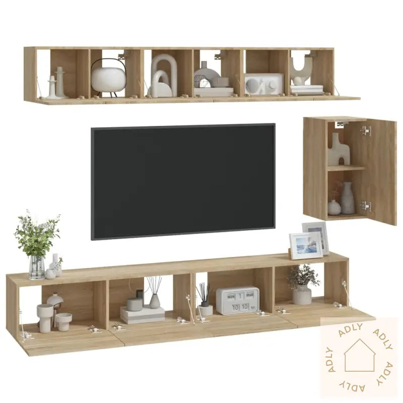 Skrue(r) og plugg(er) for innfesting i veggen følger ikke med. Finn passende skrue(r) og plugg(er) som passer til nettopp din veggtype. Hvis du er usikker, ta kontakt med fagfolk. Husk å følge instruksjonene nøye.Alle produktene leveres med en tydelig monteringsveiledning slik at du enkelt kan sette sammen dine nye sonoma eik-møbler.Farge: sonoma eikMateriale: konstruert trePakken inneholder:3 x TV-benker: 60 x 30 x 30 cm (L x B x H)1 x TV-benk: 30,5 x 30 x 60 cm (L x B x H)2 x TV-benker: 100 x 30 x 30 cm (L x B x H)Velg denne TV-benkpakken i sonoma eik for et tidløst supplement til hjemmet ditt, og kombiner enkelt med andre møbler. Denne løsningen gir deg både god stil og smarte oppbevaringsmuligheter.