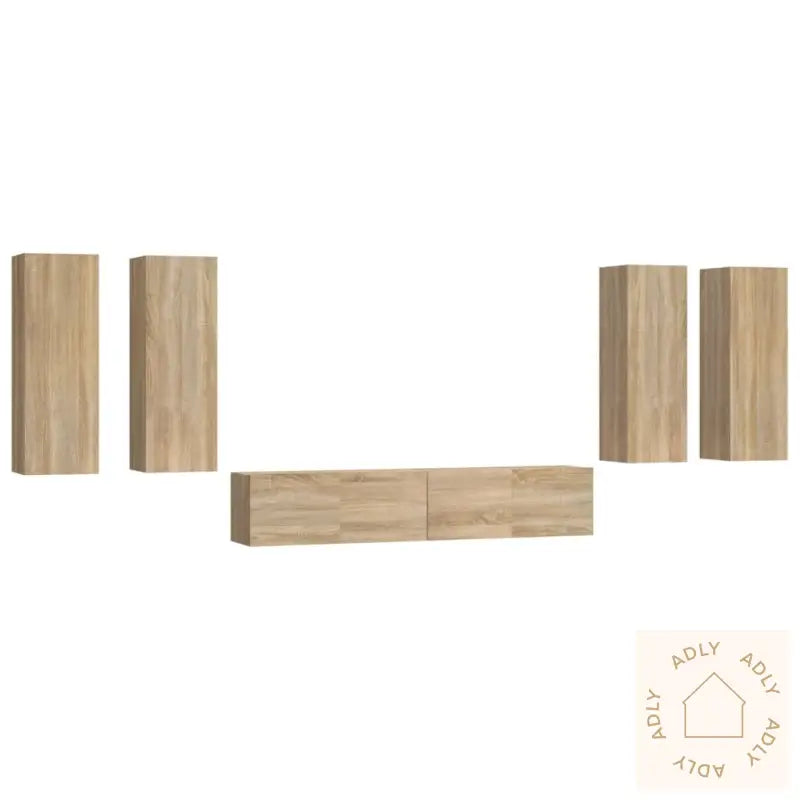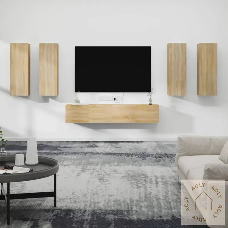 Skrue(r) og plugg(er) til veggmontering er ikke inkludert. Husk å bruke festemidler som passer for veggen hjemme hos deg. Spør gjerne fagfolk hvis du er usikker. Les gjennom instruksjonene grundig før montering.Alle produkter leveres med en enkel monteringsveiledning i esken, så du kommer raskt i gang.Farge: Sonoma eikMateriale: Konstruert trePakken inneholder:2 x TV-skap: 80 x 30 x 30 cm (B x D x H)4 x TV-benk: 30,5 x 30 x 90 cm (B x D x H)